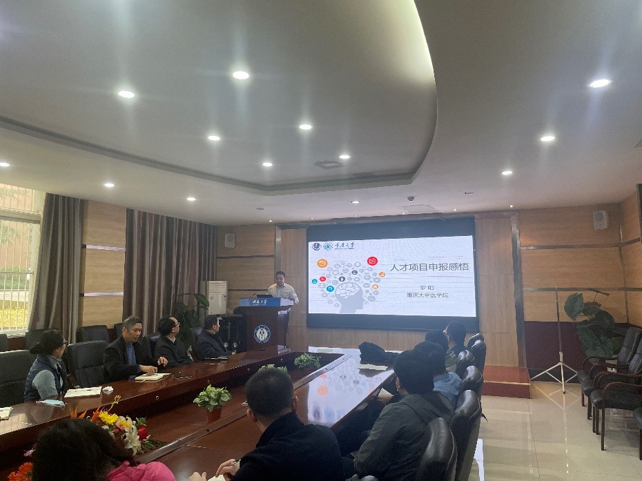 罗教授首先介绍了人才项目的类型、申报时间和申报特点,随后分析了不同人才项目的申报流程,包括前期成果的提炼、方向的选择、申请书的撰写与答辩的准备等等。总结了申报的各阶段的准备工作,从总体框架到细节对人才项目的申请做了梳理。最后,罗教授向大家介绍了重庆大学医学院,希望与我校师生进一步交流合作。