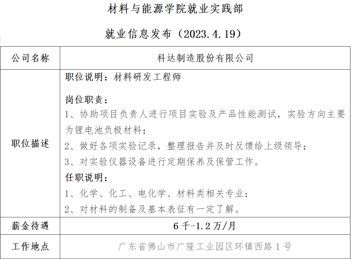 就业信息发布(2023.4.19)—科达制造股份有限公司