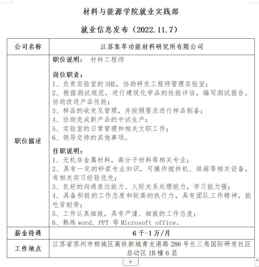 就业信息发布—江苏集萃功能材料研究所有限公司