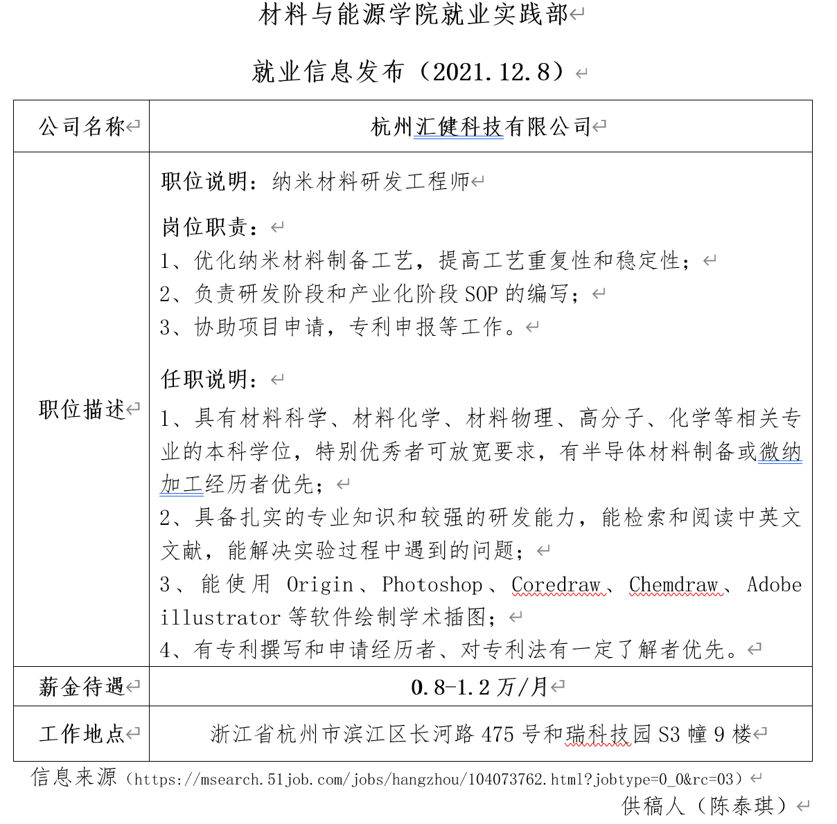 就业信息发布(2021.12.8)——杭州汇健科技有限公司