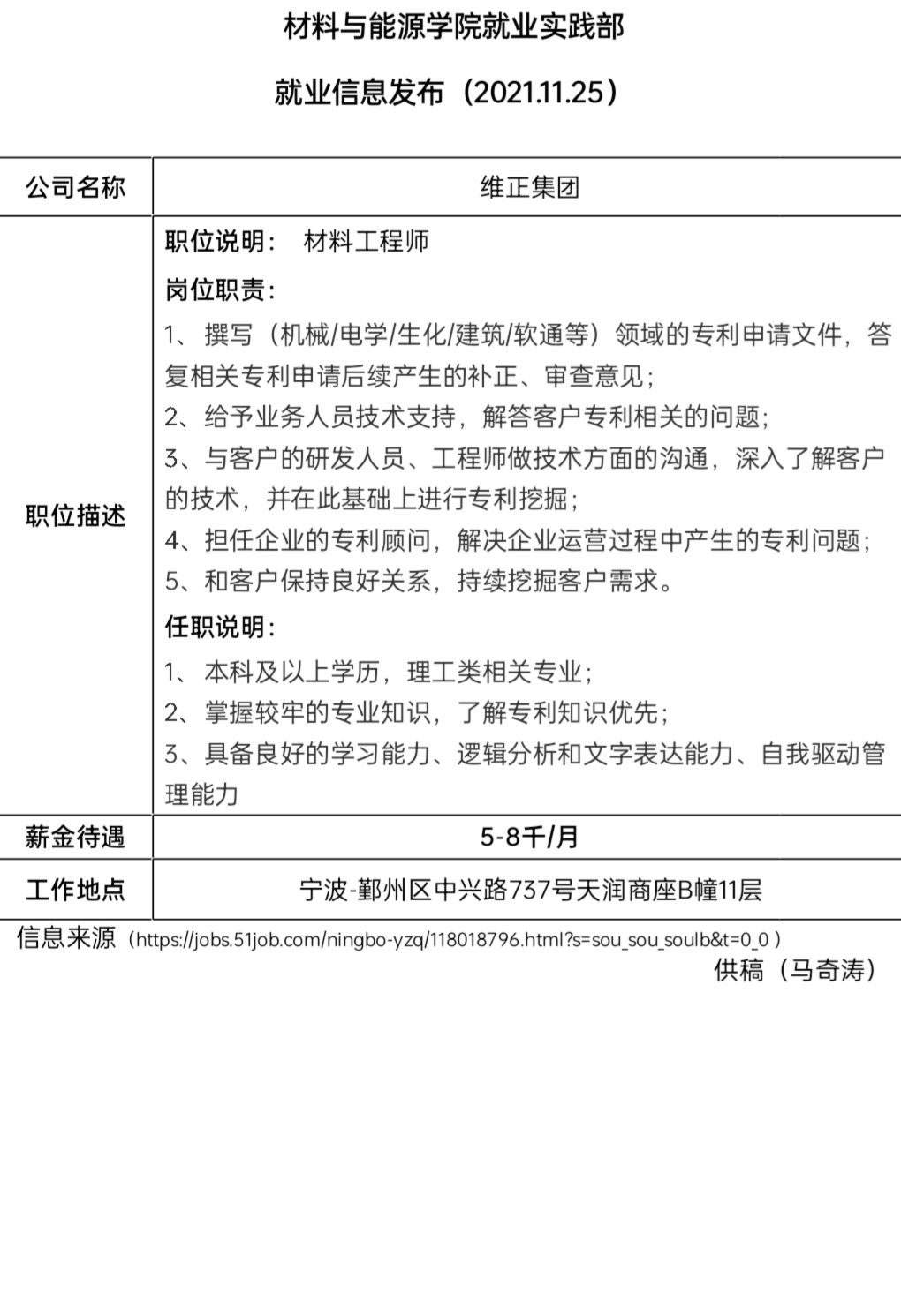 就业信息发布(2021.11.25)——维正集团
