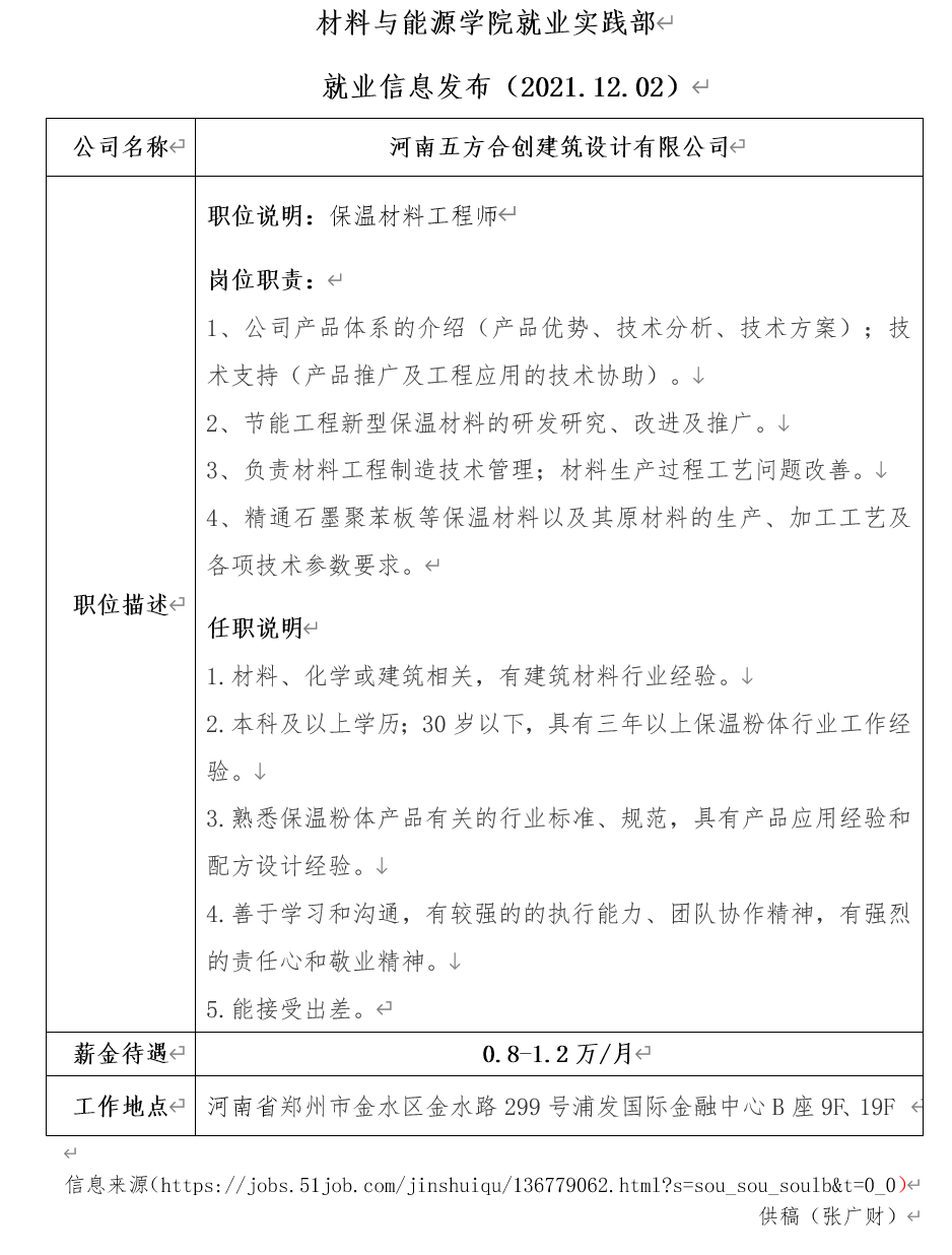 就业信息发布(2021.12.02)----河南五方合创建筑设计有限公司