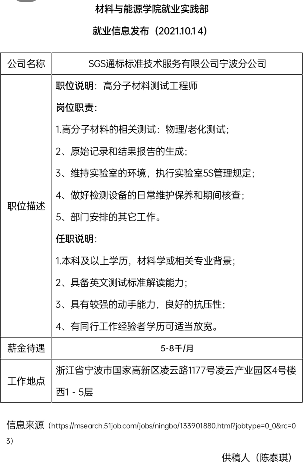 太阳成集团tyc539就业实践部 就业信息发布(2021.10.14)