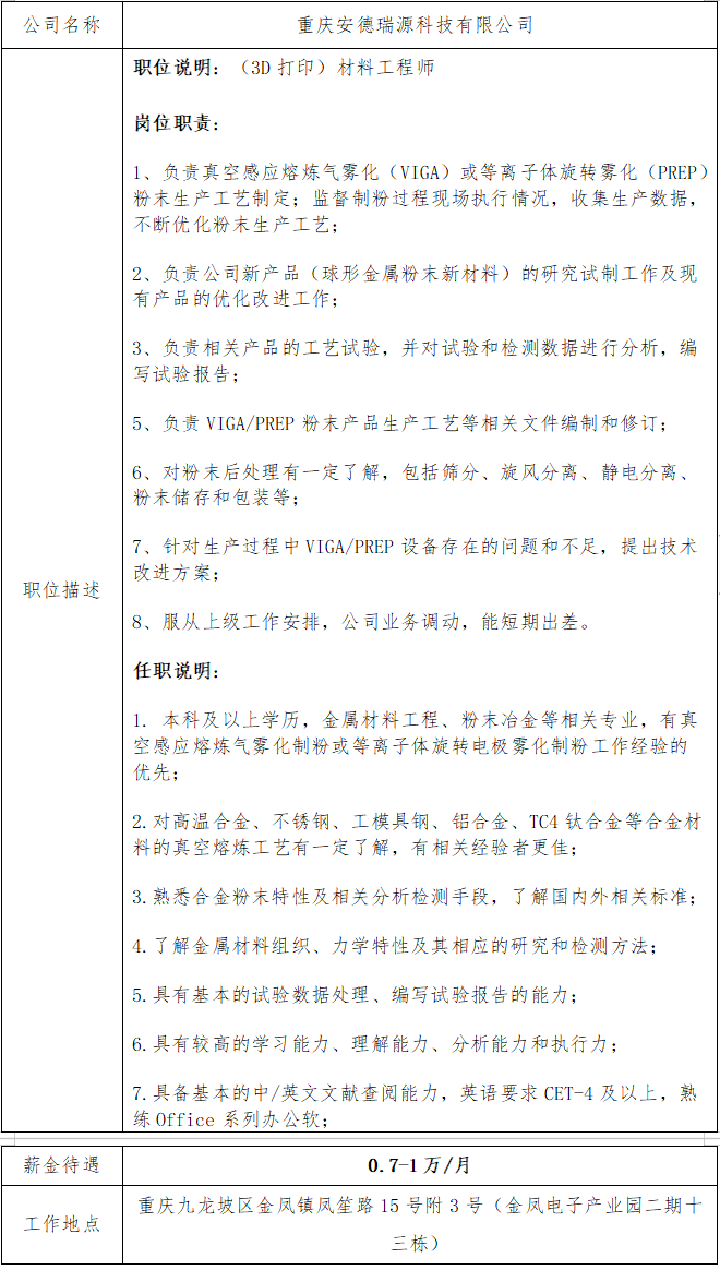 就业信息发布3月20日-重庆安德瑞源科技有限公司