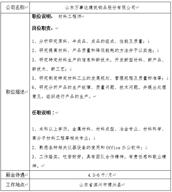 就业信息发布2021.3.8-山东万事达建筑钢品股份有限公司
