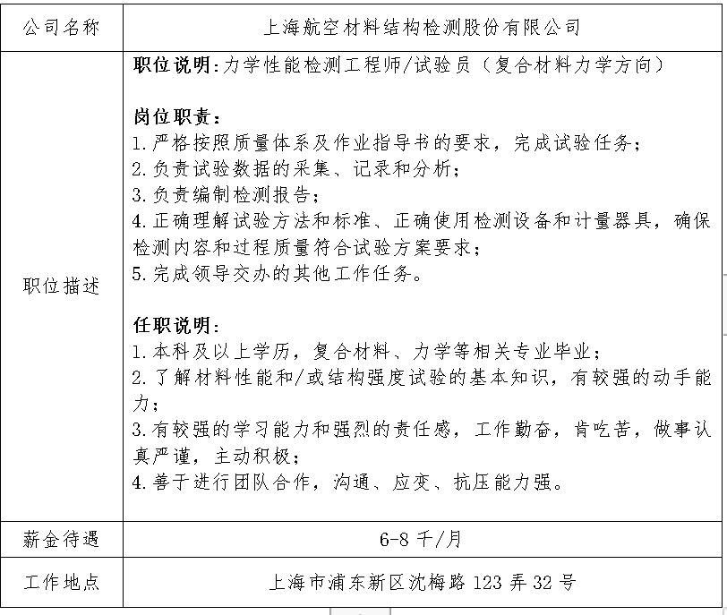 就业信息发布2021.1.5-上海航空材料结构检测股份有限公司
