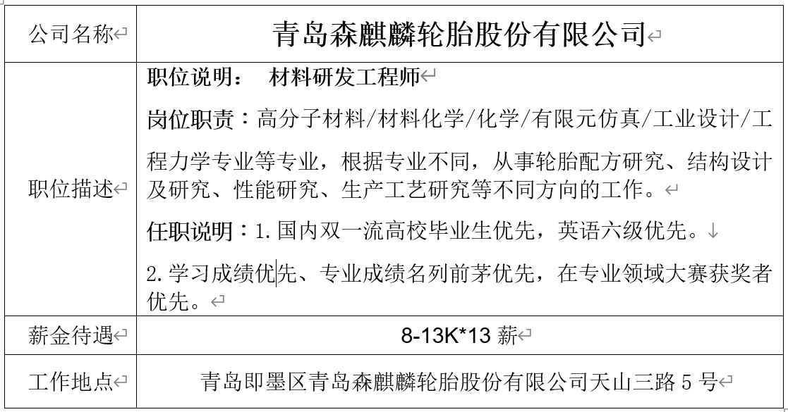 就业信息发布2020.12.26-青岛森麒麟轮胎股份有限公司
