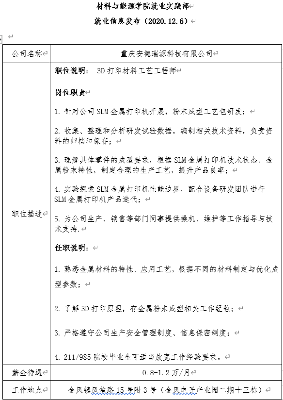 就业信息发布2020.12.06-重庆安德瑞源科技有限公司