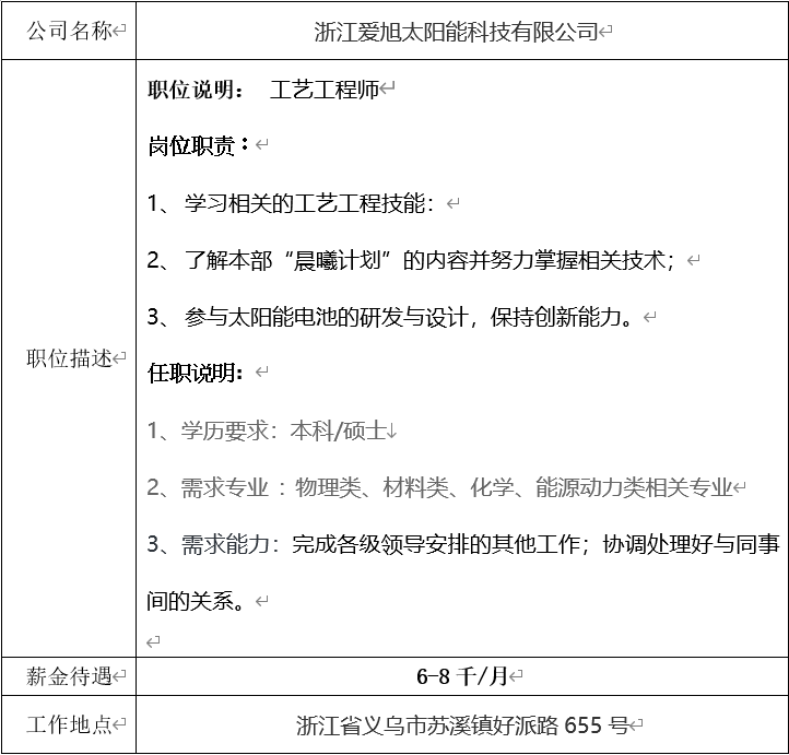 就业信息发布2020.10.30-浙江爱旭太阳能科技有限公司