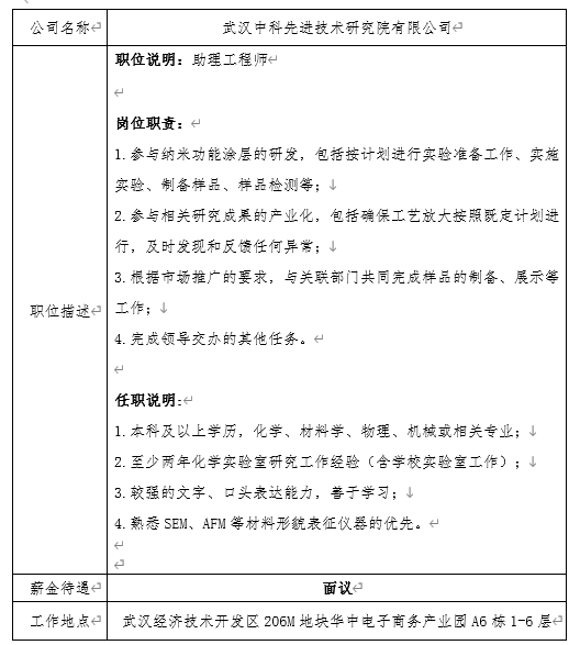 就业信息发布2020.10.15-武汉中科先进技术研究院有限公司