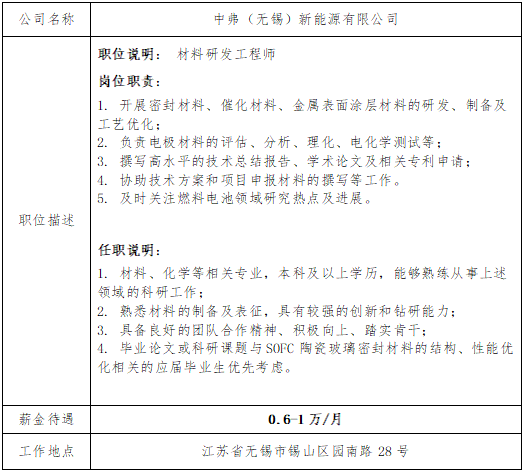 就业信息发布2020.3.27-中弗(无锡)新能源有限公司