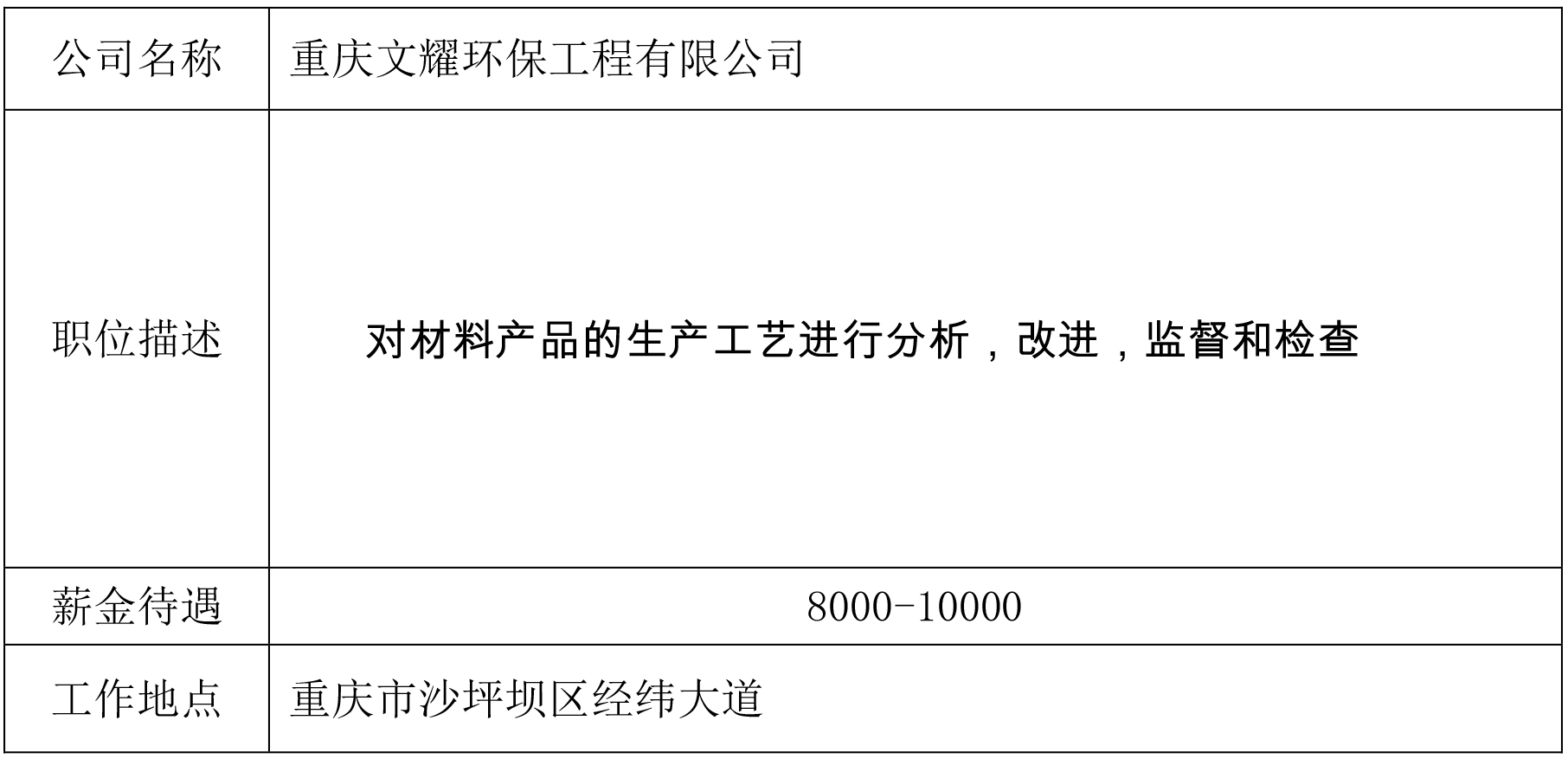 就业创业中心 20190429发布- 重庆文耀环保工程有限公司