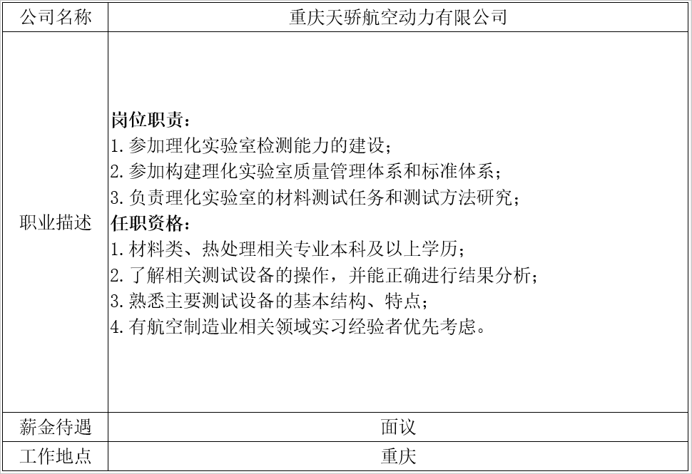 就业创业中心20180604发布-重庆天骄航空动力有限公司