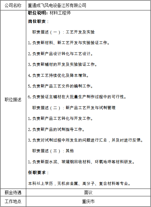 就业创业中心20180520发布-重通成飞风电设备江苏有限公司