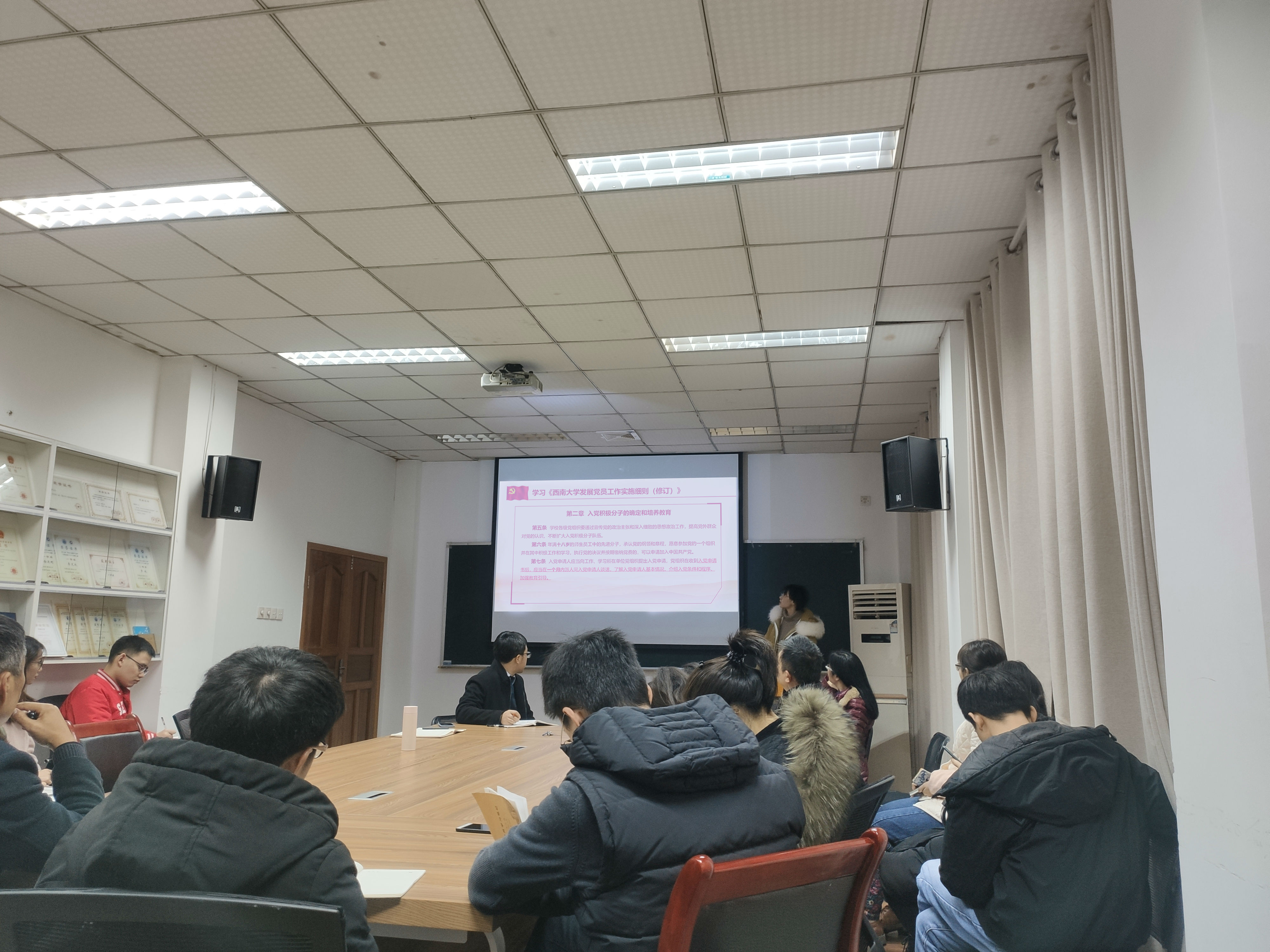 会议伊始,李红书记结合《中国共产党章程》、《中国共产党支部工作条例(试行)》、《中国共产党普通高等学校基层组织工作条例》《新时代高校党建“双创”工作重点任务指南(基层党支部)等文件精神,就党的组织机构、党支部的基本任务和主要职责、党支部委员会的自身建设、党员日常教育管理的主要方式等方面做了详细解读,并对党支部工作中的注意事项、做好学校基层党组织和党员诊断行动等近期工作安排做了一一强调说明。