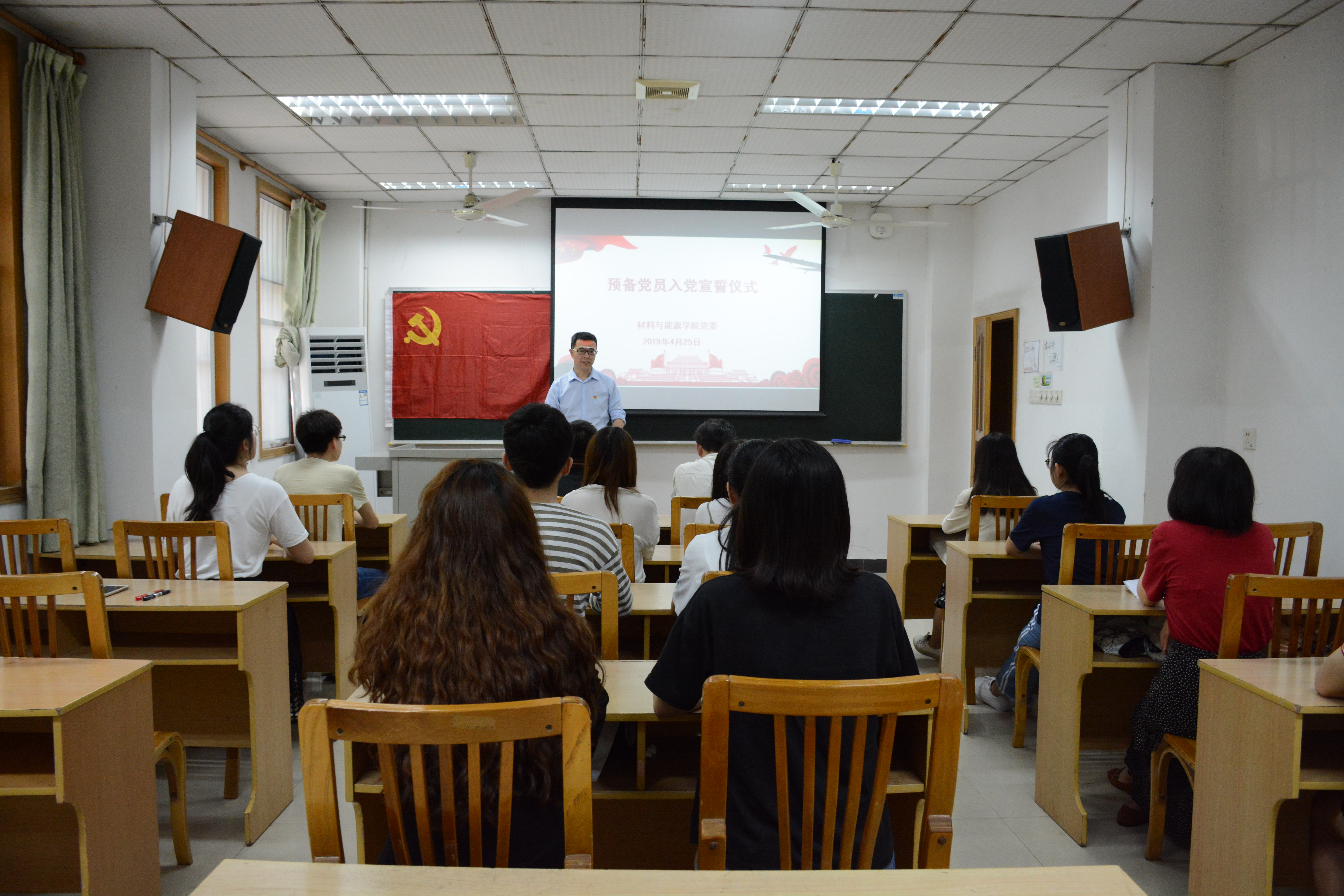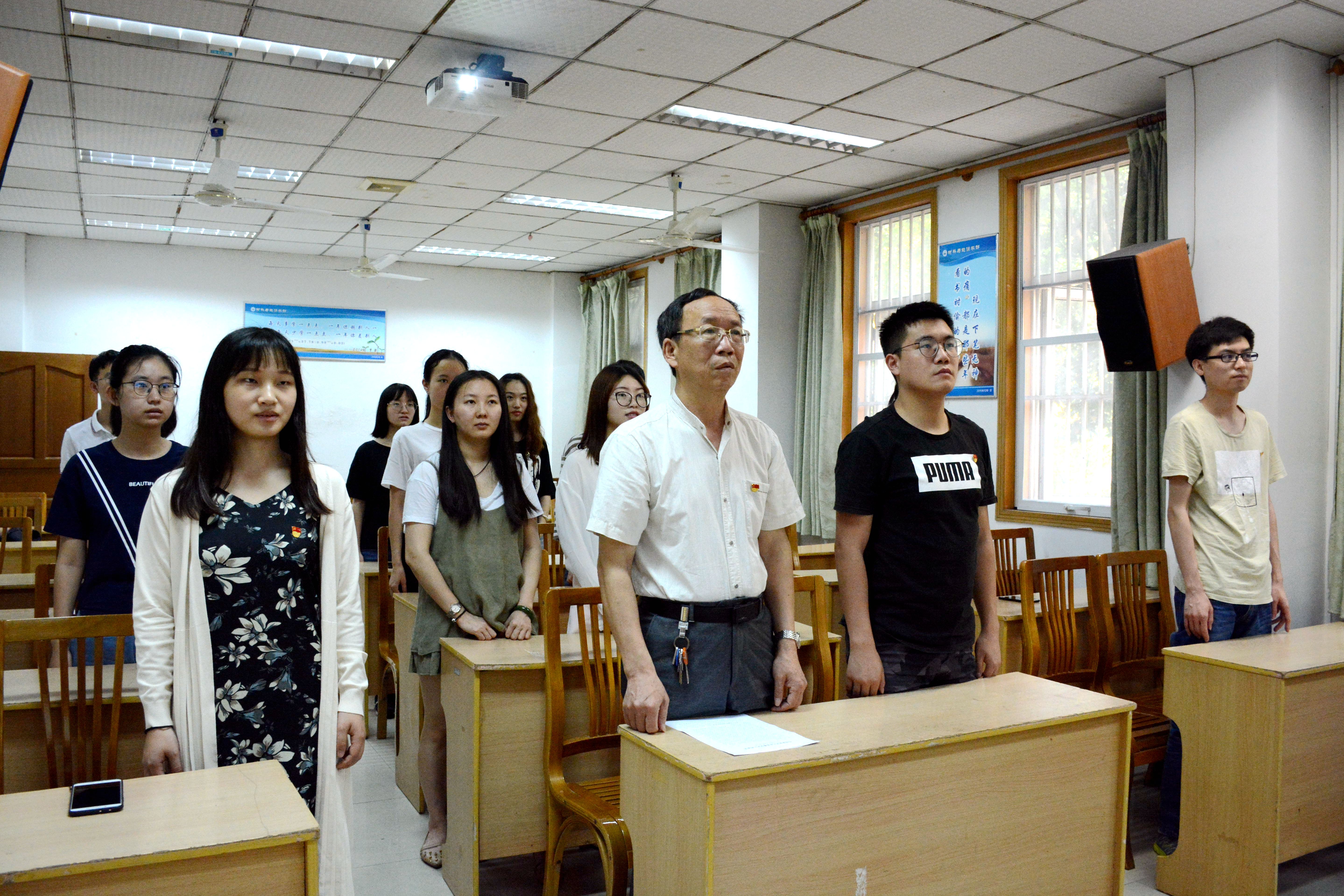 真材实料学生通讯社4月25日电(记者 张佳桐)4月25日11:00,太阳成集团tyc539预备党员入党宣誓仪式在22教学楼105教室举行。党委书记杨劲同志、党委副书记刘昭暾同志、专职组织员居媛悦同志以及太阳成集团tyc53913名预备党员参加此次活动。此次活动由党委副书记刘昭暾同志主持。
