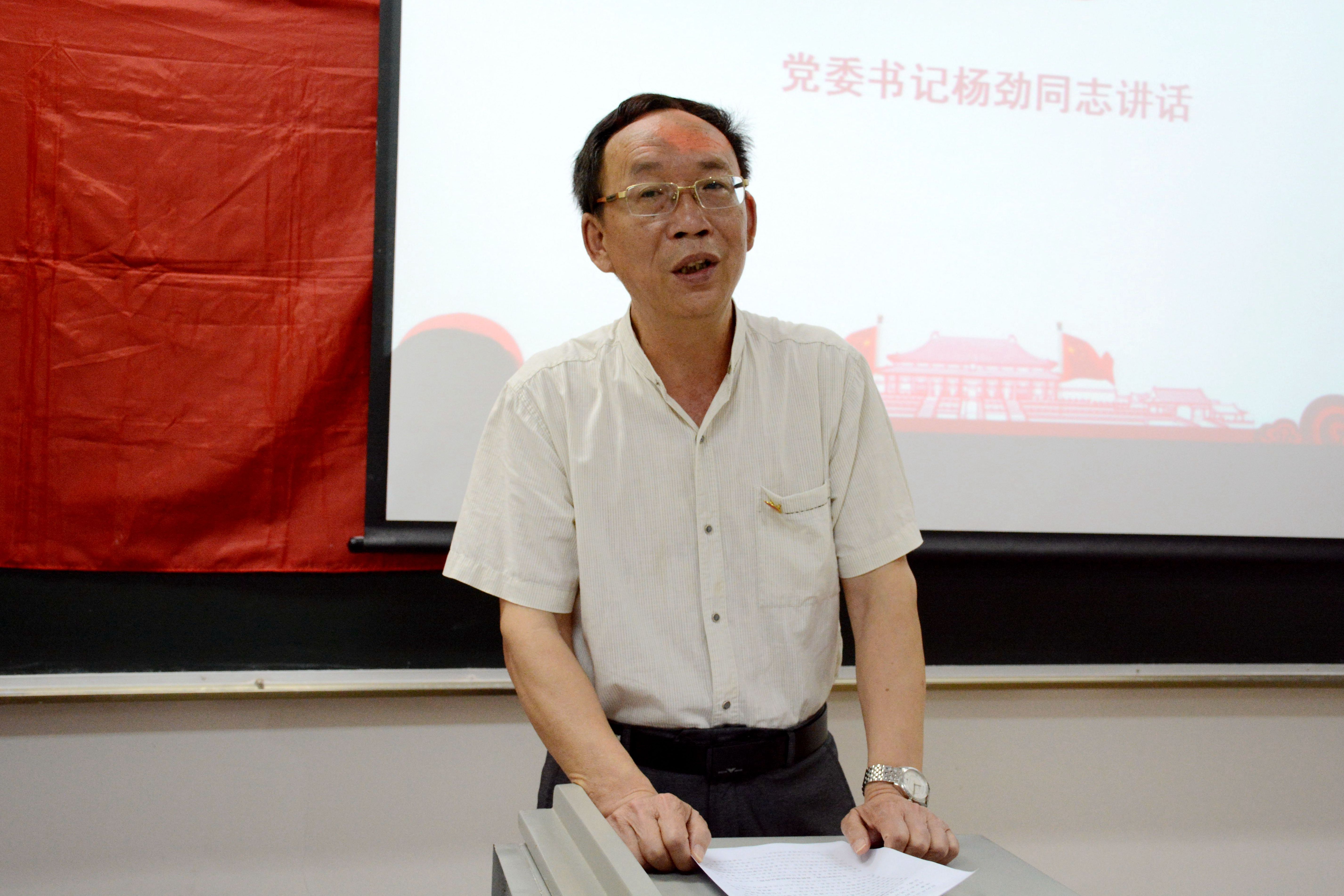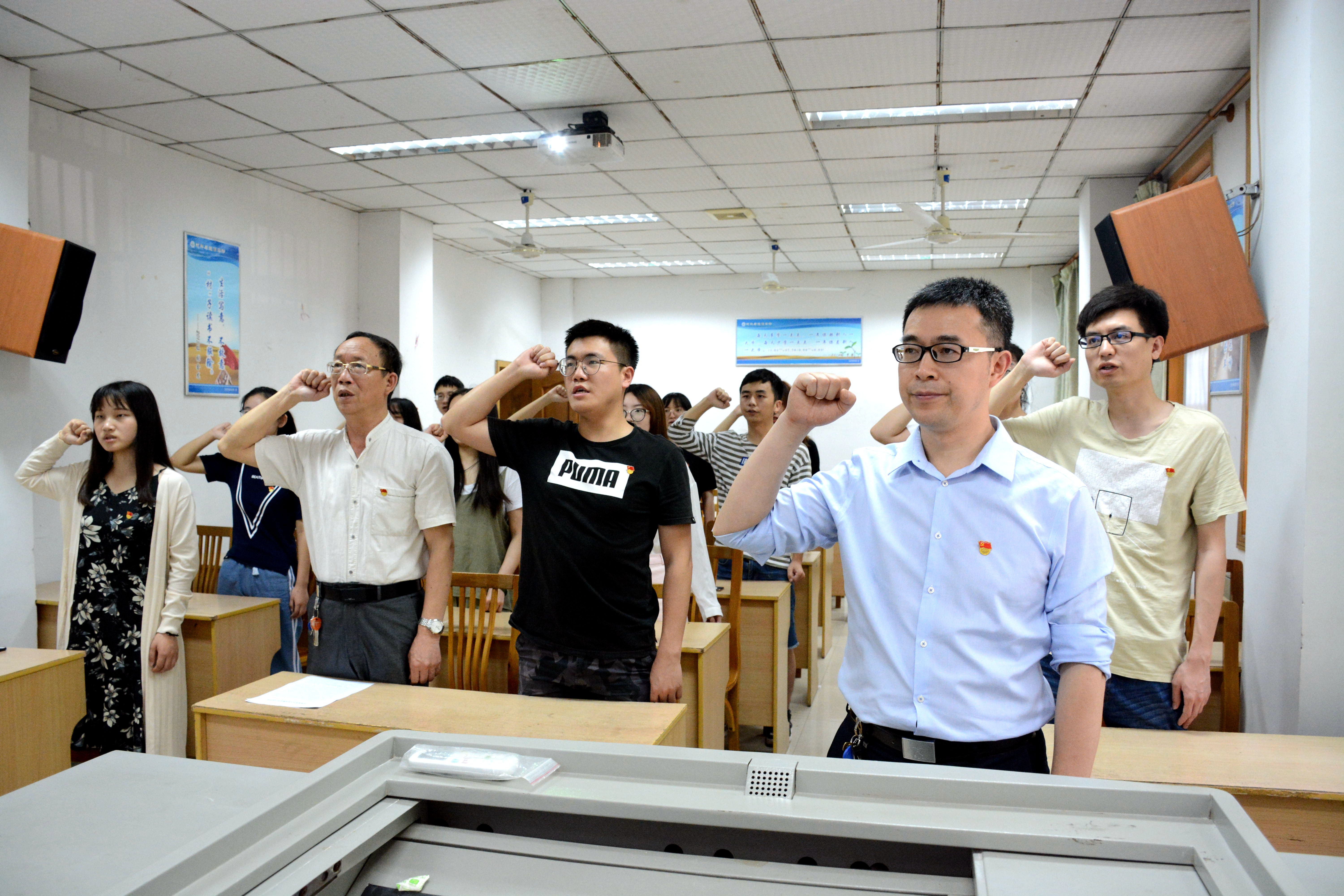 在奏唱《国际歌》后,党委副书记刘昭暾同志致辞。紧接着,他带领全体预备党员,在鲜艳的党旗下,举起右拳,进行了庄严的入党宣誓。声音铿锵,群情激奋,这短短几十个字,是每一位预备党员的坚定信念与忠诚誓言。