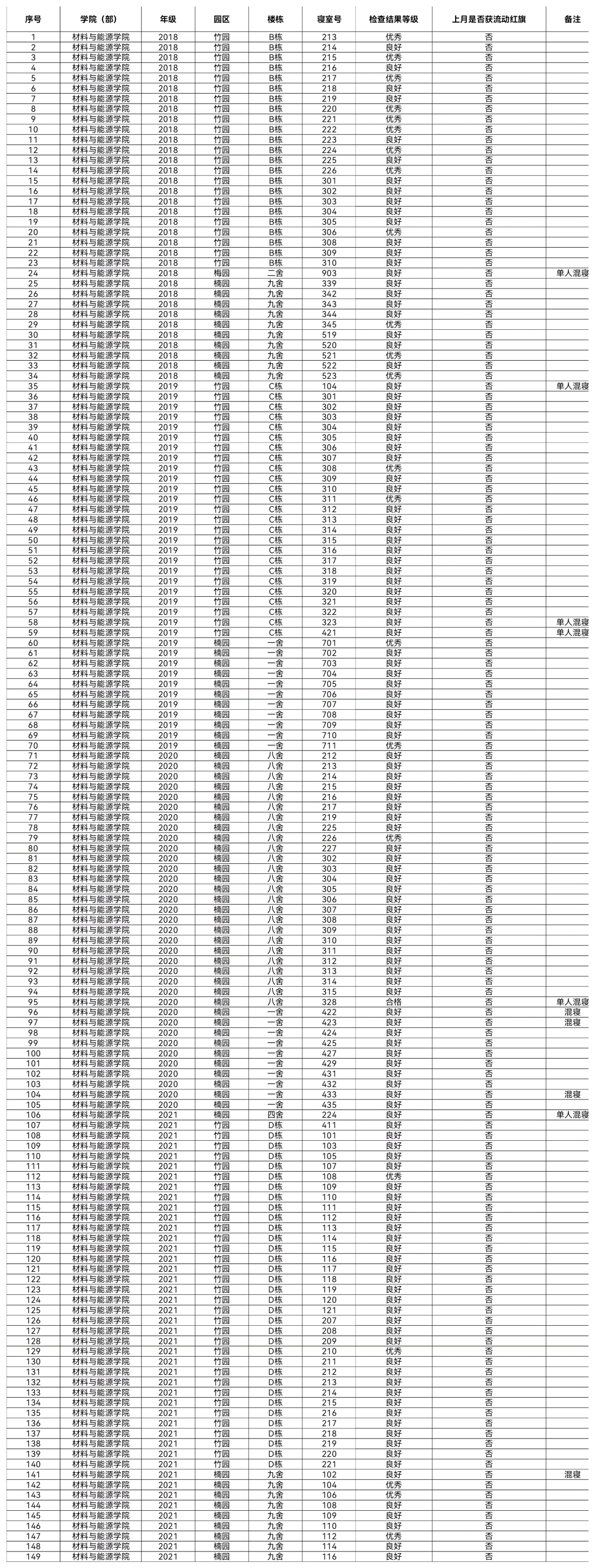太阳成集团tyc539学生寝室安全卫生集中检查结果汇总