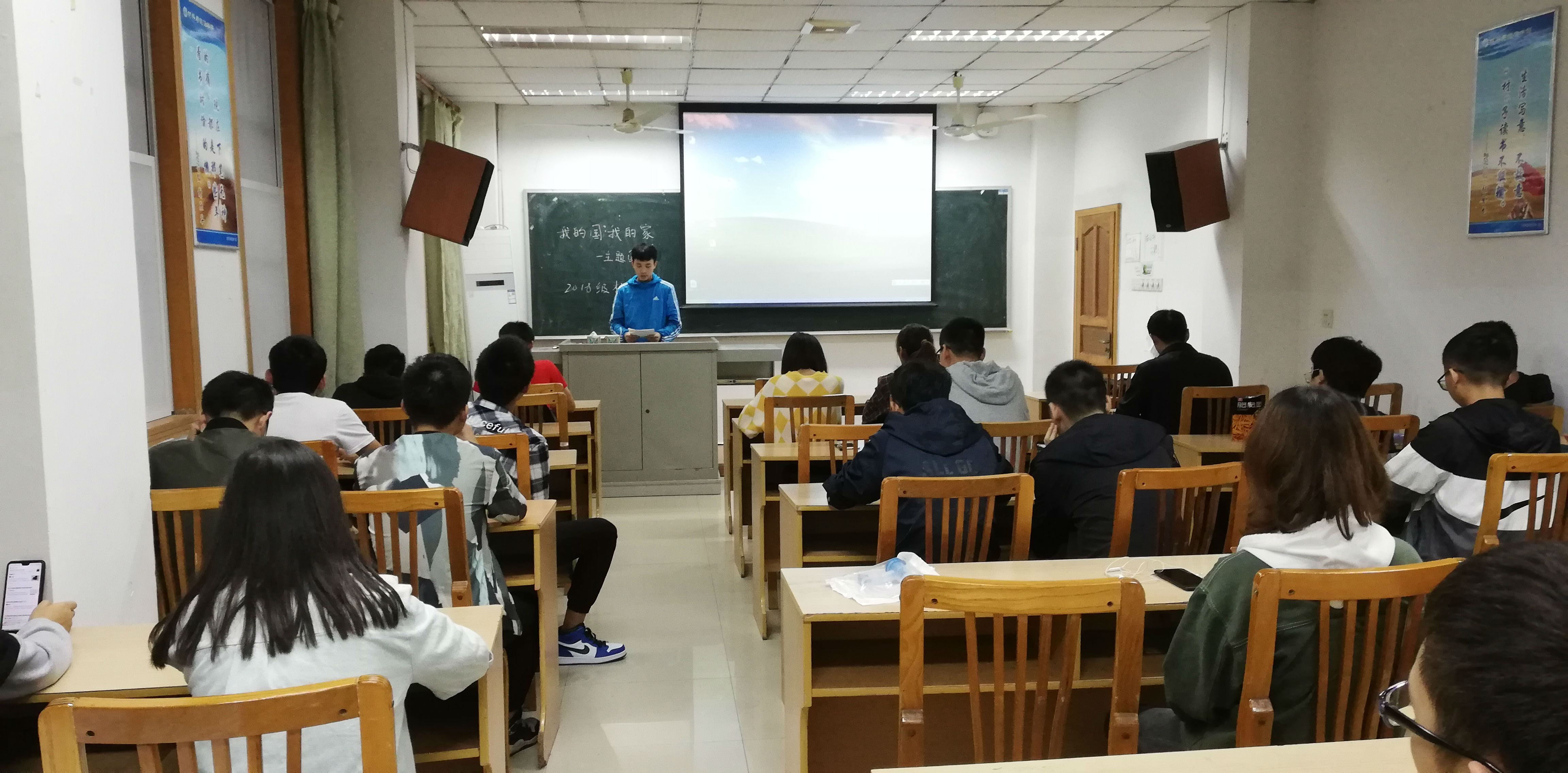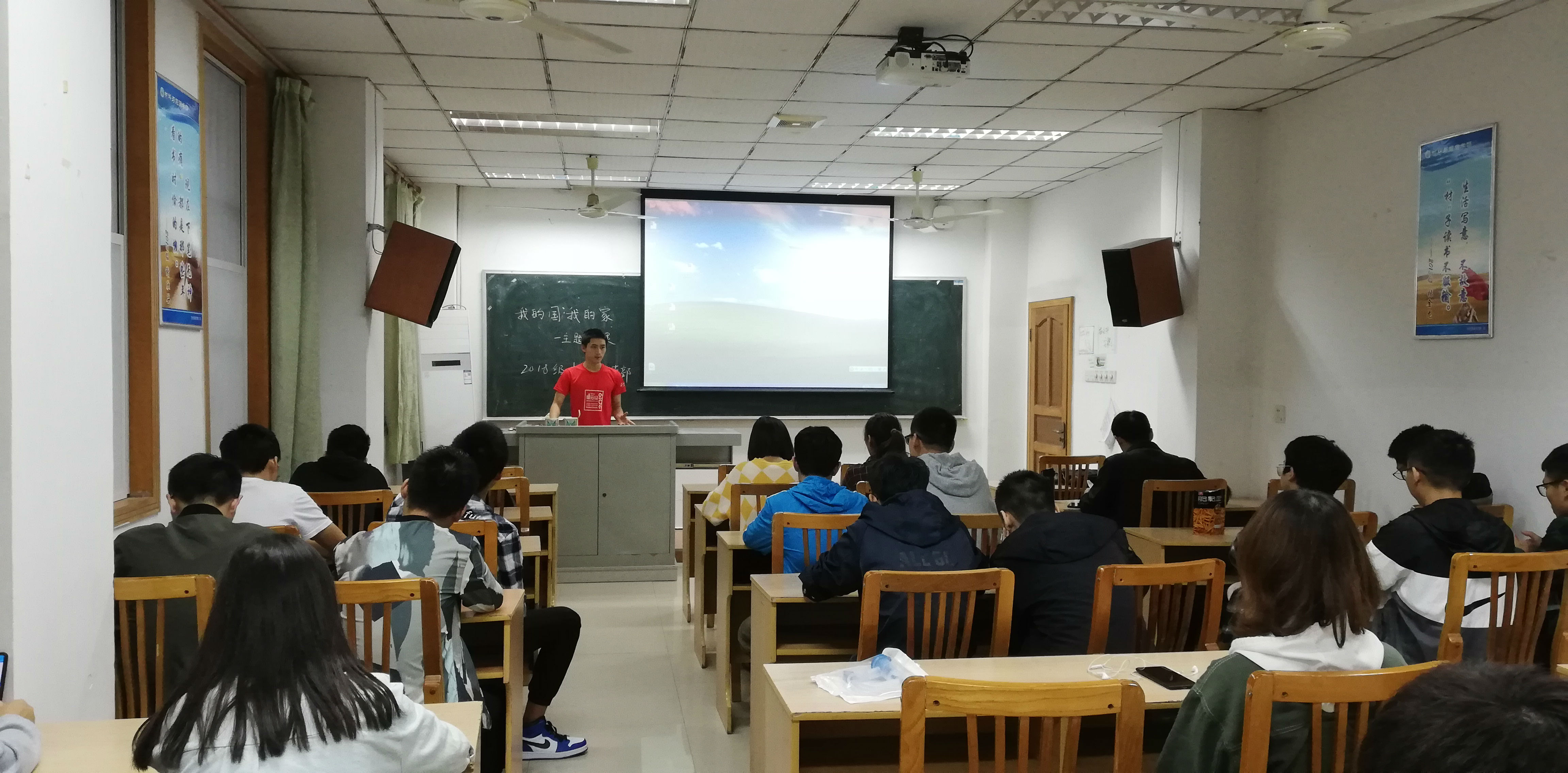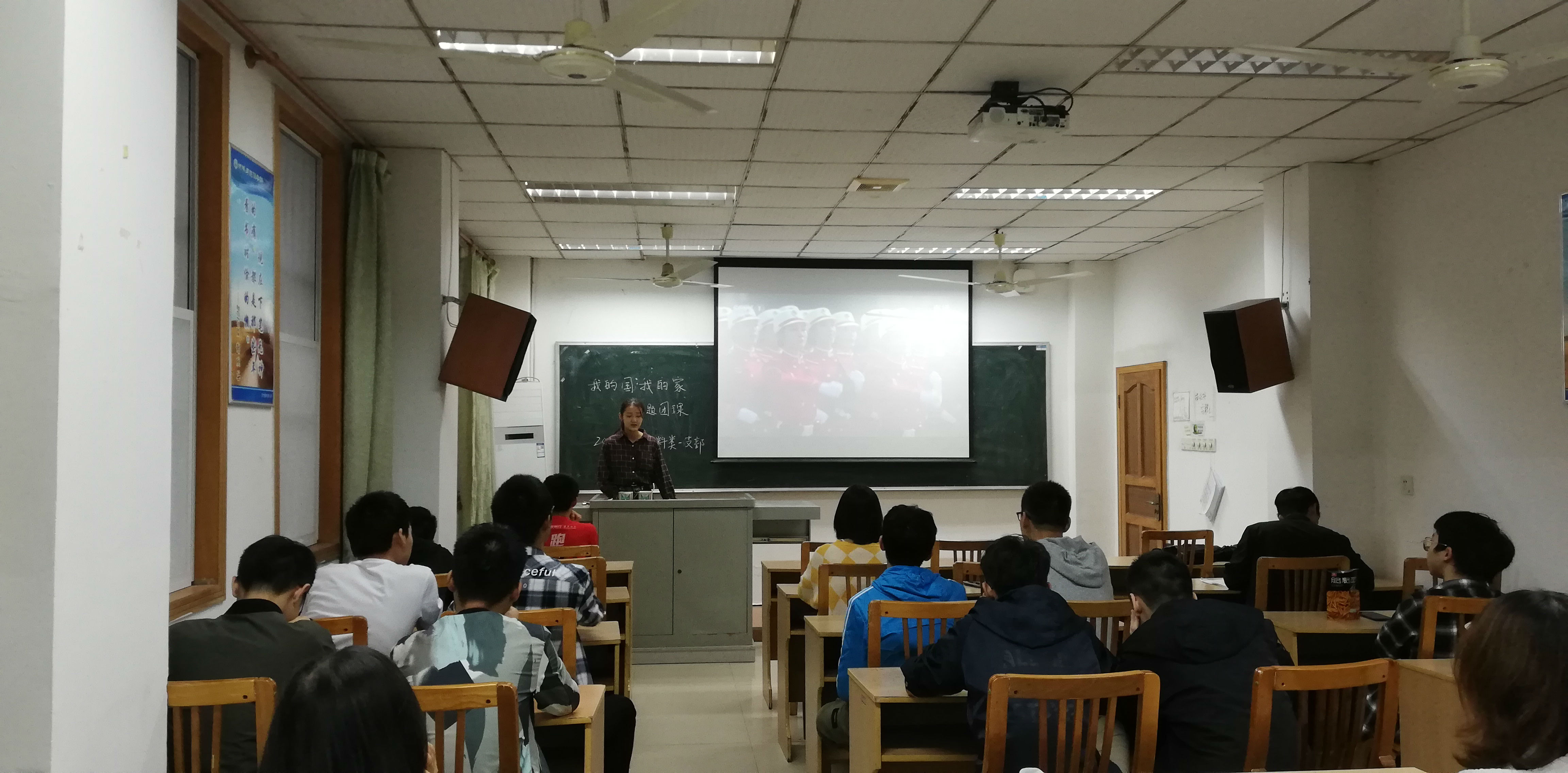 太阳成集团tyc539团委学生会10月10日电(记者 卢佳玥 编辑 卢佳玥)10月10日下午,2018级材料一团支部以“我的国,我的家”为主题的团课在第22教学楼105室举行。