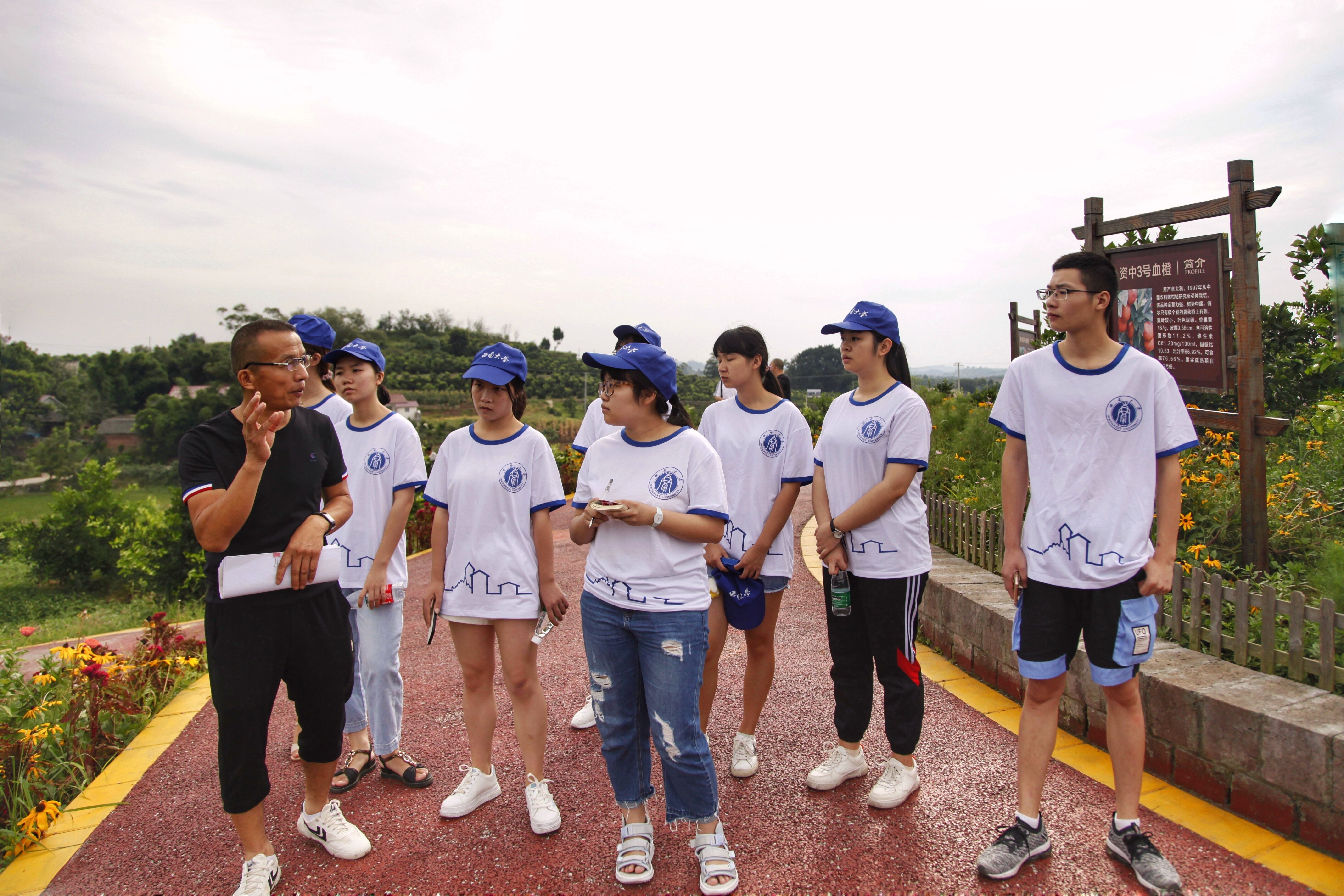 第一天,小分队成员参观了银山镇万亩血橙基地,学习了新型农产品资中血橙的种植和营销思路及促农增收的运行模式。下午,小分队成员来到银山镇街道与当地居民交流及问卷填写,关于“资中县万亩血橙基地血橙发展现状”进行深入调研。