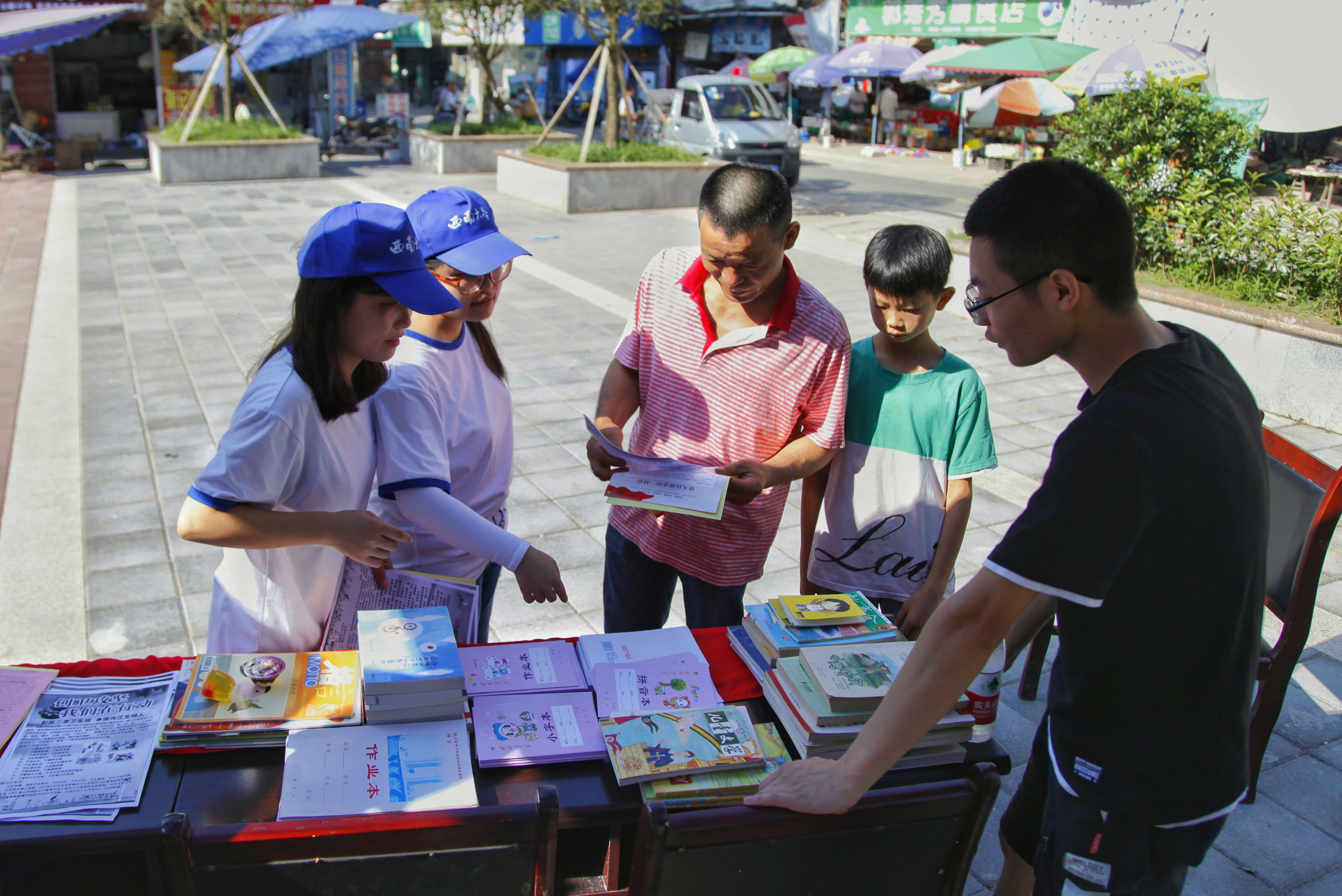 第二天,小分队在陈家镇开展“爱心教育”及“环保行动”系列活动。在陈家镇人民政府的协助下,小分队成员为孩子们进行免费赠书,同时结合陈家镇政府近期开展的“人均环境整治”工作为村民们宣传人均环境整治新思想,从行动和思想上为村镇环境出一份力。