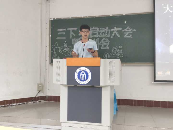 新编部部长李江明就新闻稿写作、图片拍摄进行培训,为同学们后的写稿投稿奠定基础。团委书记何焕生在进行致辞时说道:“我们为当地做的事情其实很少,但我们带去的力量是巨大的。”再次语重心长地强调安全问题和应急措施。社会实践部部长关于三下乡社会实践活动的流程进行介绍,向同学们详细说明了注意事项;最后社会实践部副部长乔彦锈对社会实践活动的认证标准、认证方式进行讲解,本次大会圆满结束。