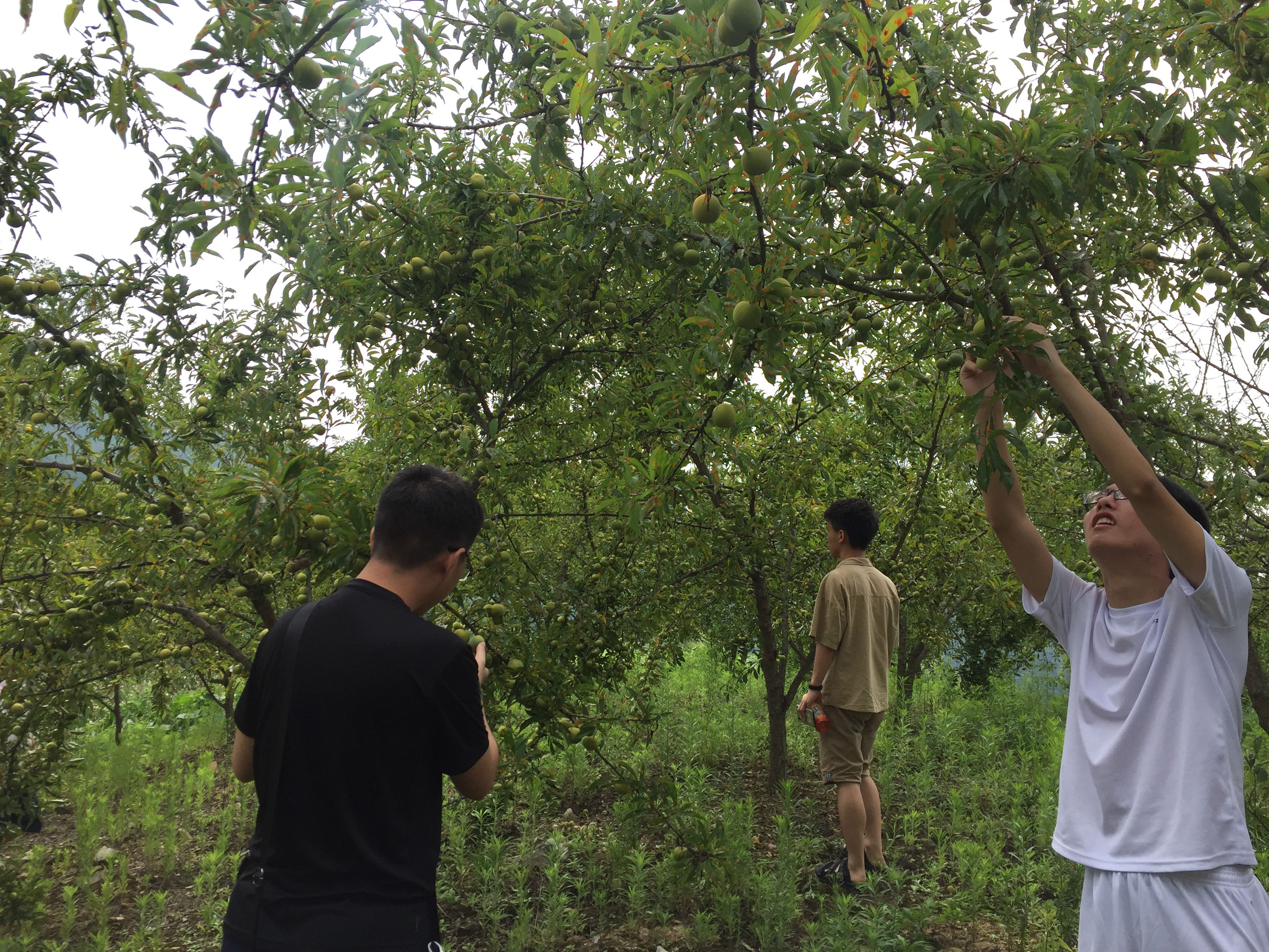走访后村民招待小队在当地果园里采摘李子。