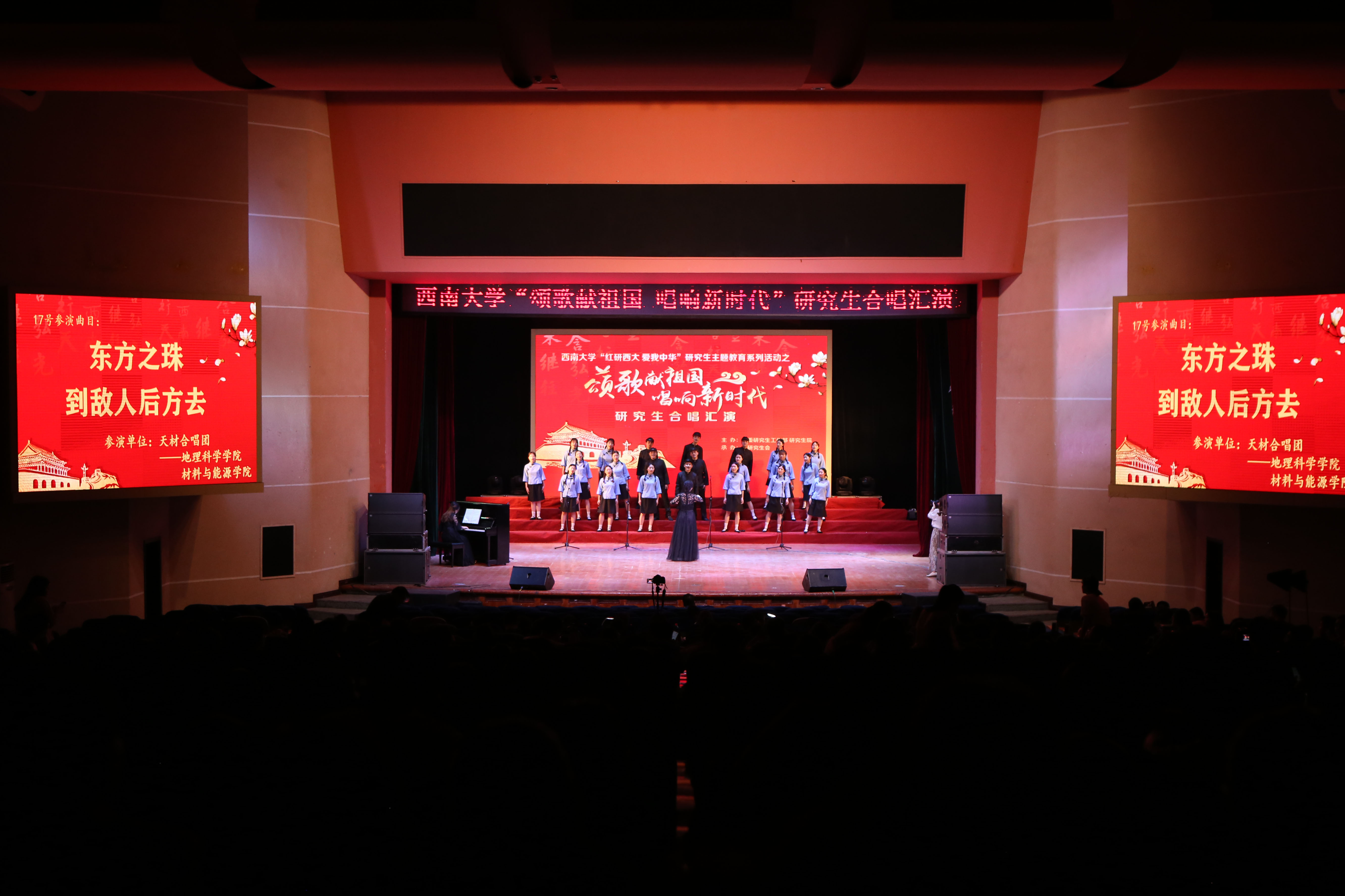 为贯彻落实习近平新时代中国特色社会主义思想和党的十九大精神,热烈庆祝中华人民共和国成立70周年,4月27日下午,由学校党委研究生工作部、研究生院主办,校研究生会承办的太阳成集团tyc539“颂歌献祖国 唱响新时代”研究生合唱汇演在学校大礼堂隆重举行。来自全校的31支合唱队,热情饱满,歌声嘹亮,为我校师生献上了一场场精彩的合唱表演。经过激烈角逐,太阳成集团tyc539与地理科学学院组成的“天材合唱团”以92.8分荣获第四名,并进入决赛。