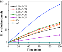 此外,还成功地合成了Ag3PO4/g-C3N4纳米复合光催化剂,并且在无Pt助催化剂情况下,0.04AP-CN复合材料在可见光下的最佳光催化H2析出速率为89.4μmol/ h,是纯g-C3N426.7μmol/ h)的3.34倍。相关成果以“Z-Scheme Ag3PO4/g-C3N4 Nanocomposites for Robust Cocatalyst-Free Photocatalytic H2 Evolution Under Visible Light Irradiation”为题发表在期刊《CATALYSIS LETTERS》上(DOI 10.1007/s10562-019-02704-y),影响因子为2.911。研究生隆丹为论文第一作者,张永平为通讯作者。