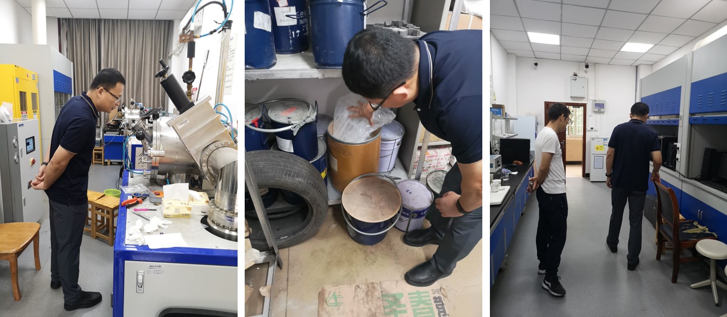 6月17日上午,学院院长徐茂文带领学院安全工作组成员对21教、25教、86栋、89栋、麦田村和薄膜中心实验室进行每月例行安全检查,重点检查了实验室安全信息栏、洗瓶试剂瓶的标签、危化品台账、垃圾分类和实验室卫生情况。本次检查未发现重大安全隐患,各实验室正常运转,但仍存在一些问题。首先是多个实验室存在的共性问题:实验室桌面不整洁,未贴安全警戒线,除此之外,个别实验室还存在气瓶未挂气瓶牌、废液桶未盖好、化学品清单未及时更新、实验室内有饮用水杯和饮料等问题。学院安全工作组对检查中发现的问题作了详细记录,要求相关责任人高度重视,尽快完成安全问题整改,进一步强化实验室管理,为广大师生营造一个和谐安全的实验环境。