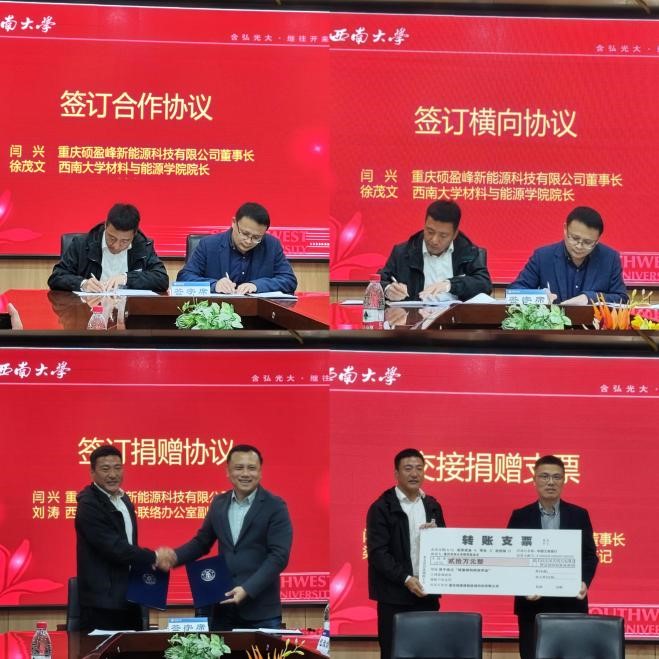 重庆硕盈峰新能源科技有限公司来院签订合作及捐赠协议