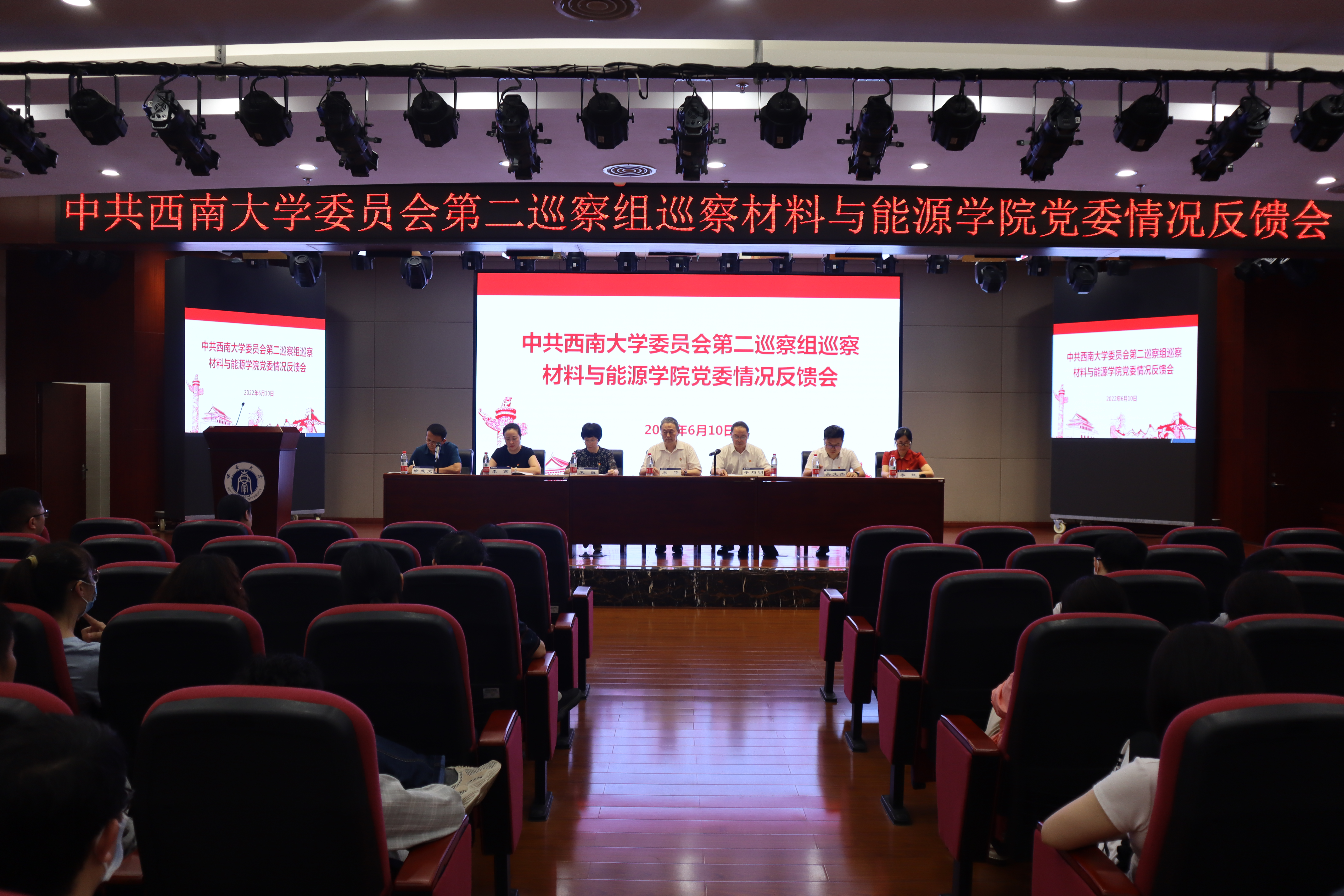 根据学校党委2022年巡察工作统一部署,6月10日下午,太阳成集团tyc539党委第二巡察组巡察太阳成集团tyc539党委意见反馈会在档案馆4楼多功能厅召开。学校党委副书记、纪委书记、巡察工作领导小组副组长李华同志,第二巡察组组长、电子信息工程学院党委书记毕均明同志,校纪委副书记、纪委办主任、监察处处长朱敏同志,巡察组副组长、党政办公室副主任、政策研究室主任吴文杰同志,巡察组副组长、人力资源部副部长李燕同志出席会议。大会由太阳成集团tyc539院长徐茂文主持,学院领导班子成员、全体教职工、离退休代表参加。