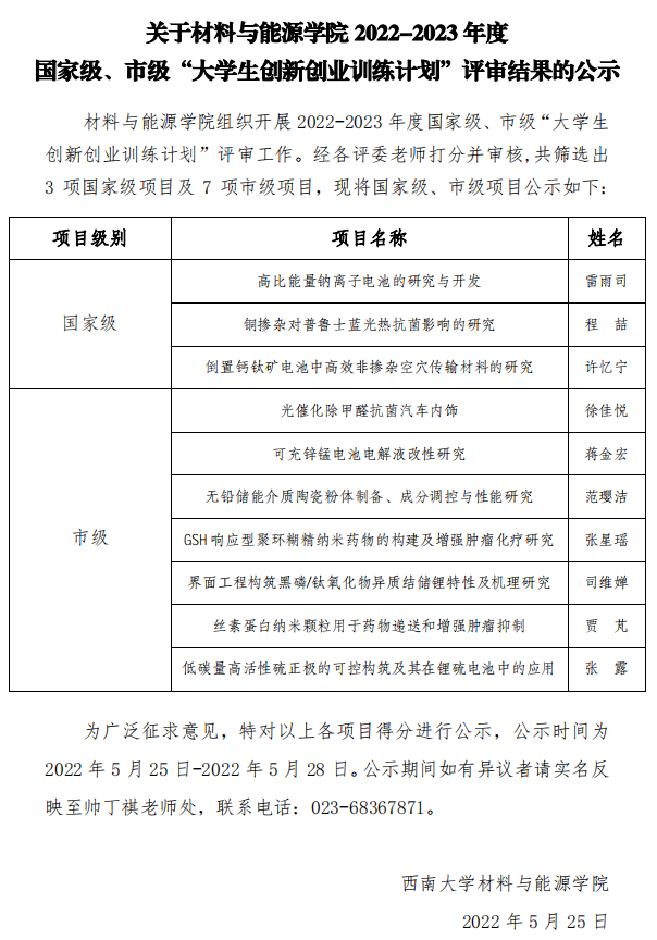 2022-2023年度大学生创新创业训练计划国家级、市级评审结果公示