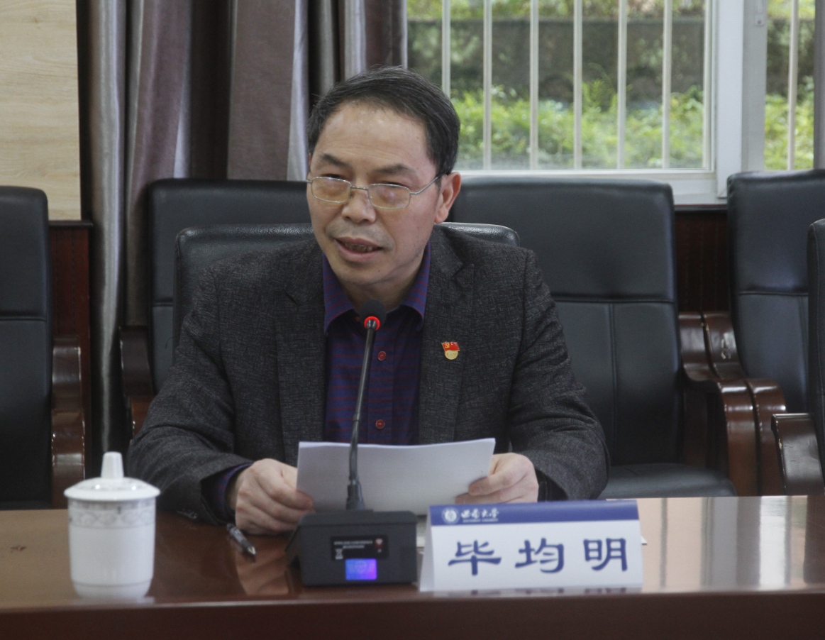 毕均明组长代表学校党委第二巡察组作巡察工作动员讲话,介绍了本次巡察工作的实施方案、主要内容和工作流程,希望学院准确把握巡察目标任务,把稳校内巡察政治方向,与巡察组密切配合协作,共同完成好巡察任务。