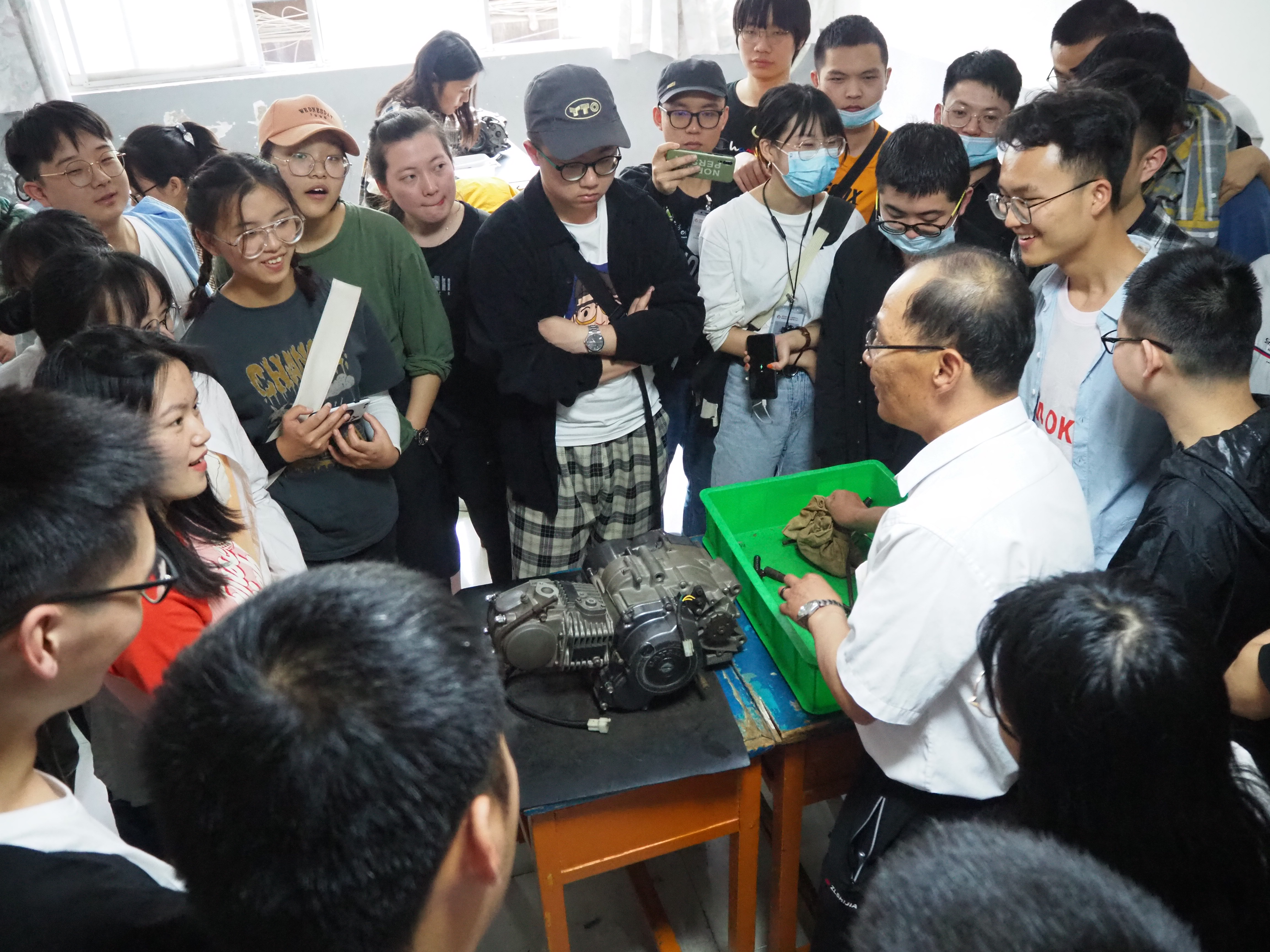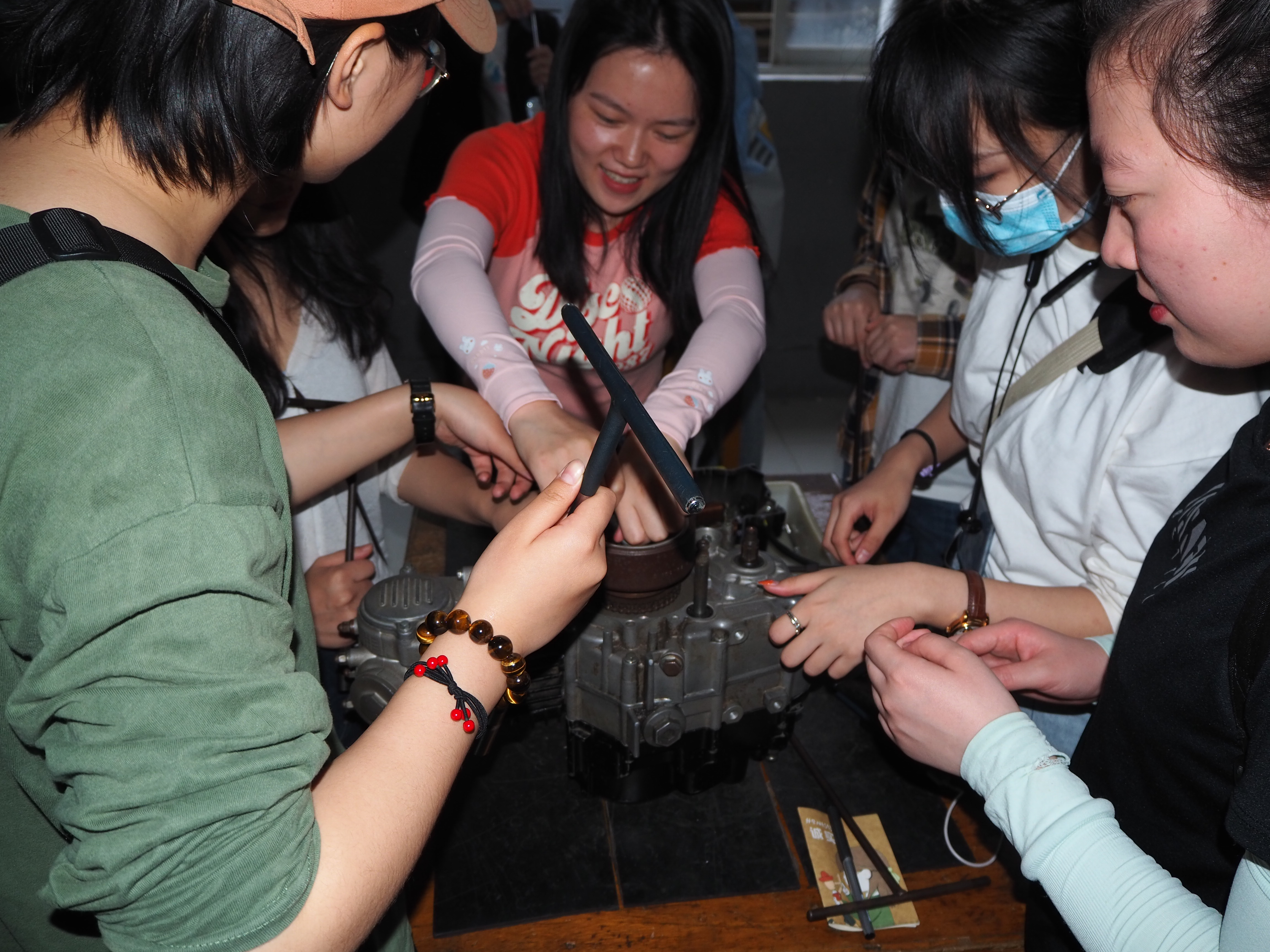 材料物理专业5月11日实习讯 (编辑 董栩佳 摄影 谢勤 审核老师 刘岗)5月9日,太阳成集团tyc539材料物理专业全体同学跟随专业老师董师傅学习了摩托车发动机原理及拆装。董师傅从四冲程发动机为例,介绍了摩托车发动机结构工作原理,并结合实体发动机在拆卸过程中详细讲解。随后学生进行动手实践,亲手拆卸组装DY152FMH—5型发动机。