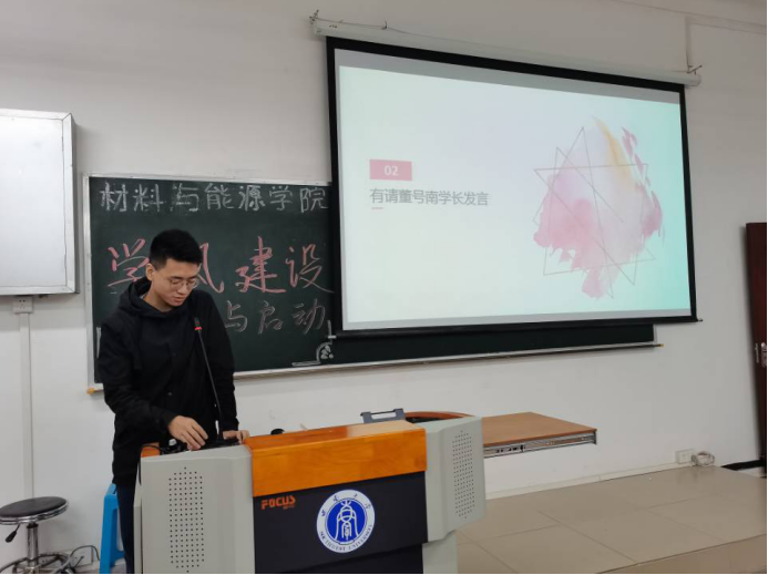 会议开始,学生会主席董号南学长发言,学长首先讲明本活动的原因,即对同学们的学习有帮助。紧接着学长对之前的学风建设活动进行了总结,即内容单一,学生参与度不高,考勤不太认真,学长建议可以写电影观后感,进行错题总结等。