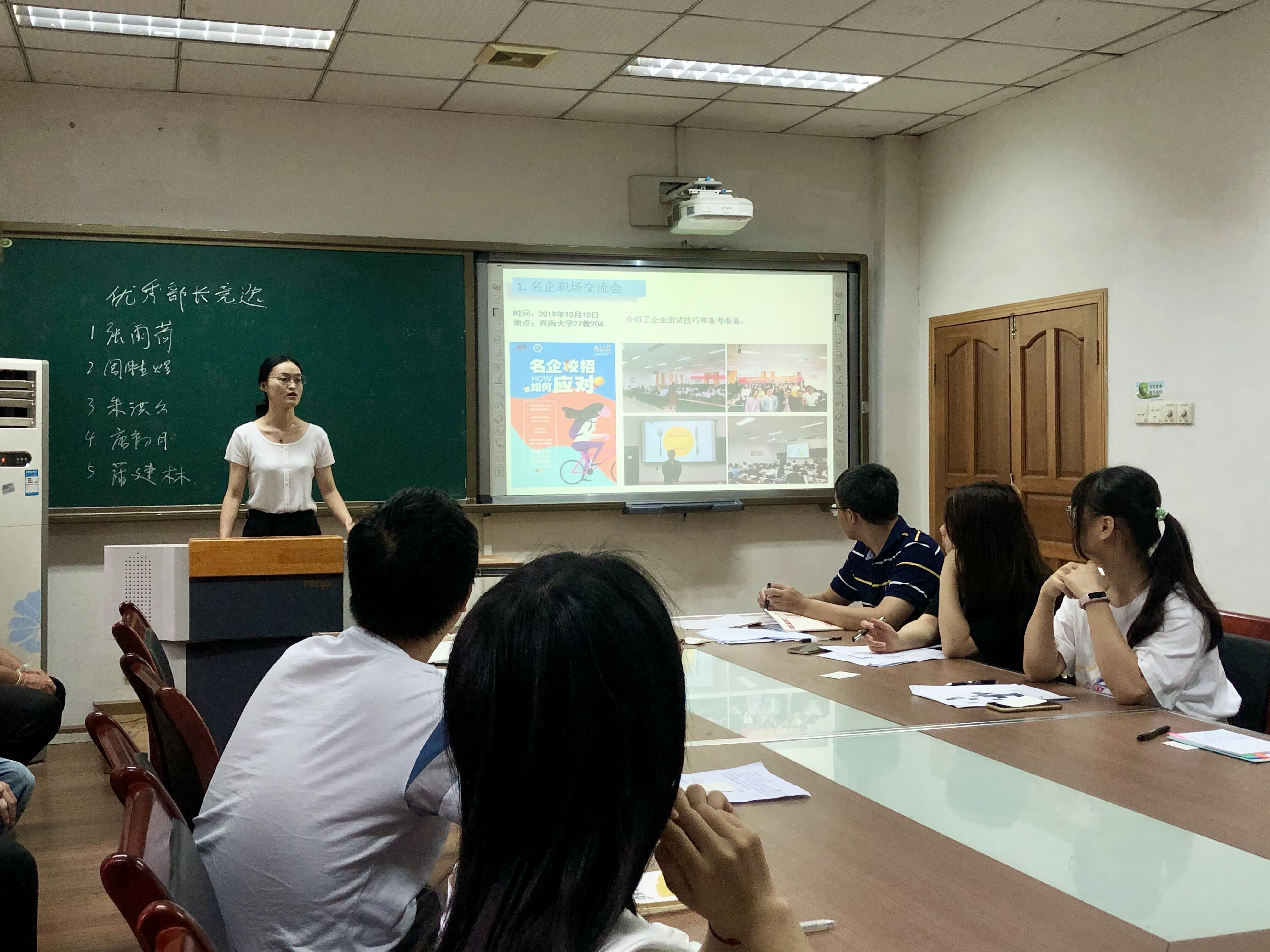 本次大会包括优秀干部、干事评选,各部门年度述职总结和干部竞选三个议程。首先,各部门部长以及推选出来的优秀干事对本年度进行的工作做了回顾与总结,就过去一年来部门的工作开展情况、工作经验和建议向与会者进行了分享和交流。