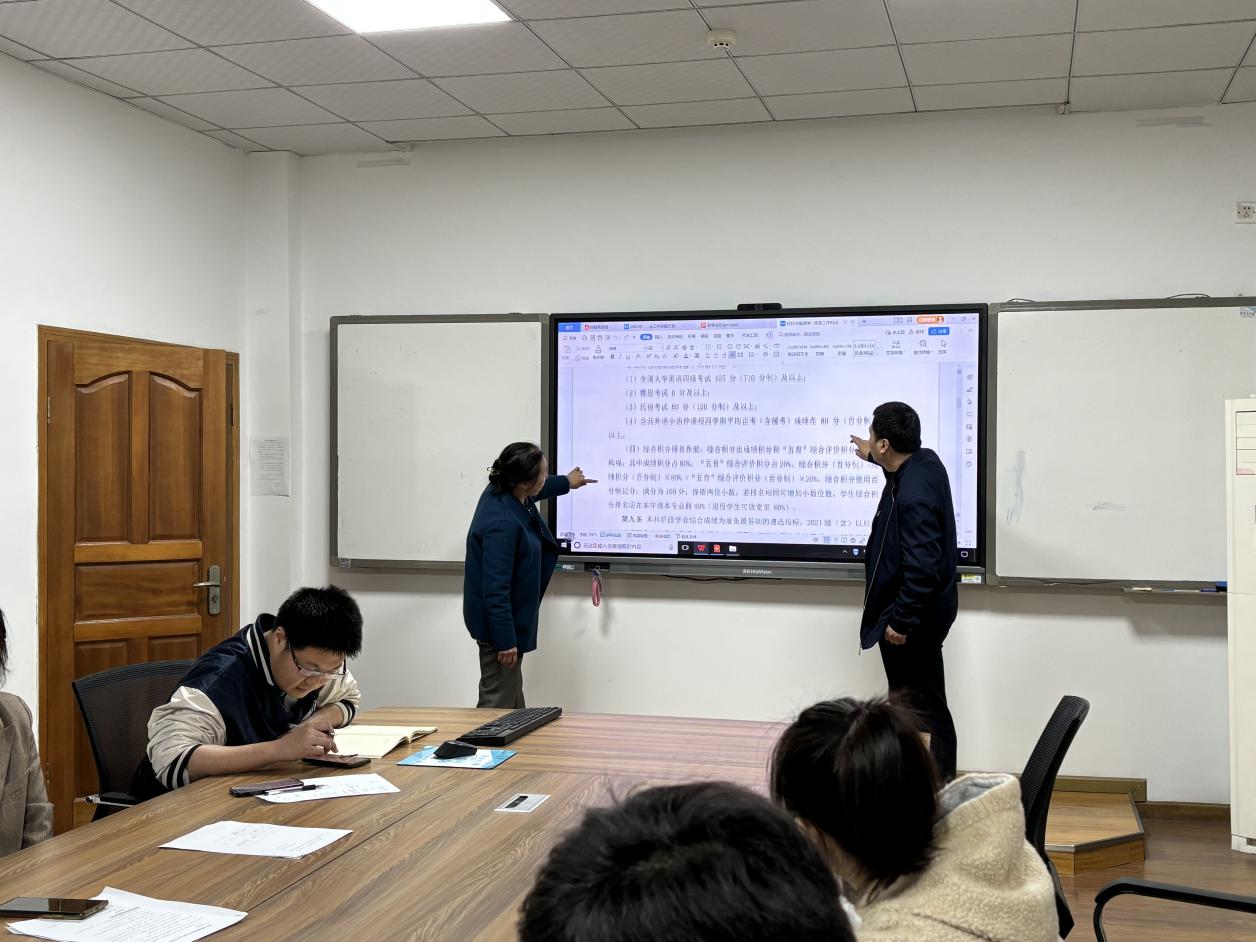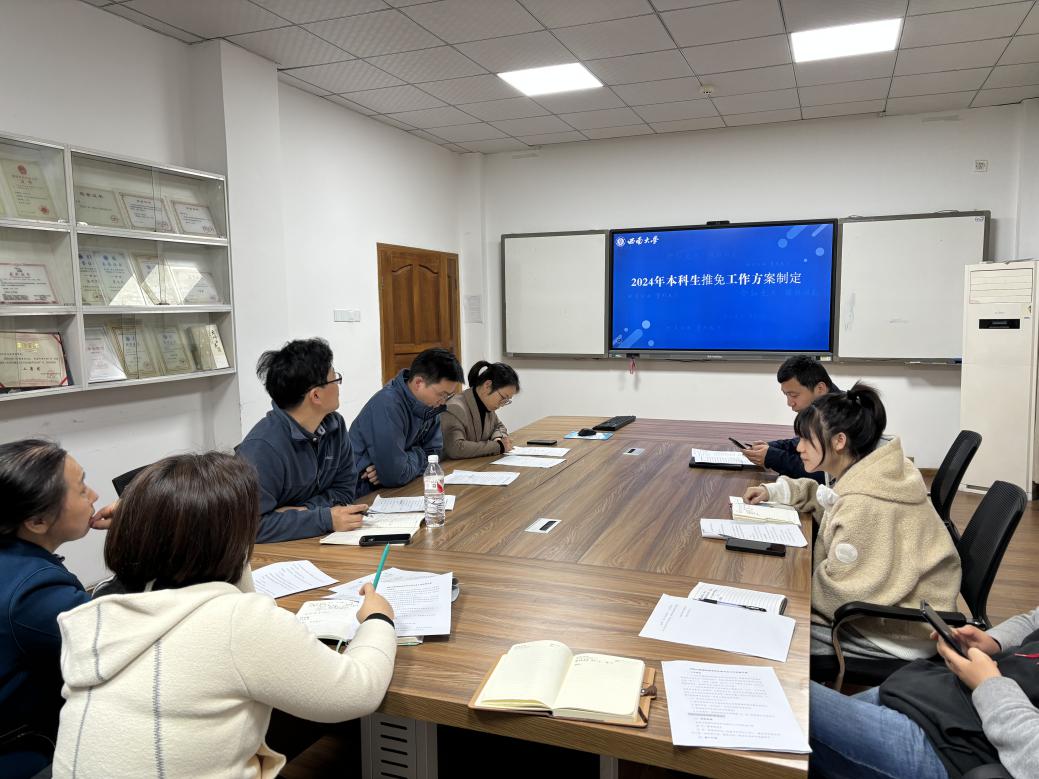 为进一步规范学院推荐优秀应届本科毕业生免试攻读硕士学位研究生工作,加大拔尖创新人才选拔力度、完善硕士研究生招生多元录取机制,郭胜锋副院长同各位教师针对2024年研究生推免文件细则各个环节展开了细致深入的探讨,尤其针对推免生的基本要求、可加分项、推免流程等内容。推免工作不仅应注重学生的学习成绩,同时也应注重学生个人的品德发展,在今年的推免文件中,着重强调了对于学生的思想政治考察、综合素质考察,这也是坚持立德树人、五育并举的教育理念的深刻体现。同时,老师们提出,在学院日常教学工作中,各位教师也要注重自身的专业素质提升和师德师风建设,培养德智体美劳的学生人才。