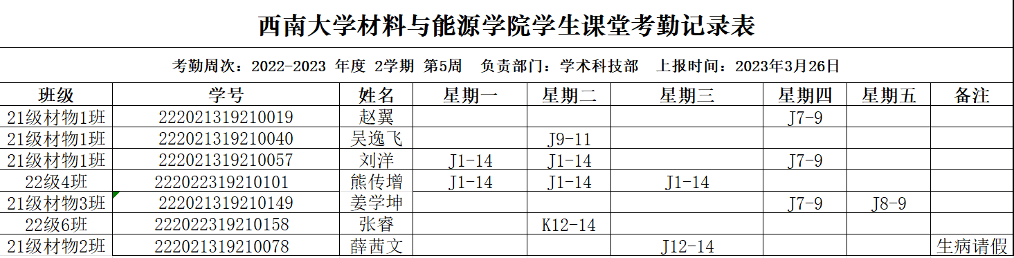 2022-2023年度第二学期太阳成集团tyc539第五周考勤表