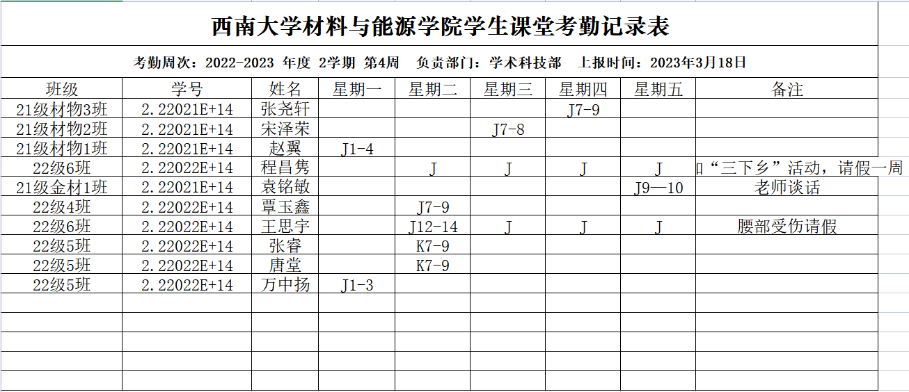 2022-2023年度第二学期太阳成集团tyc539第四周考勤表